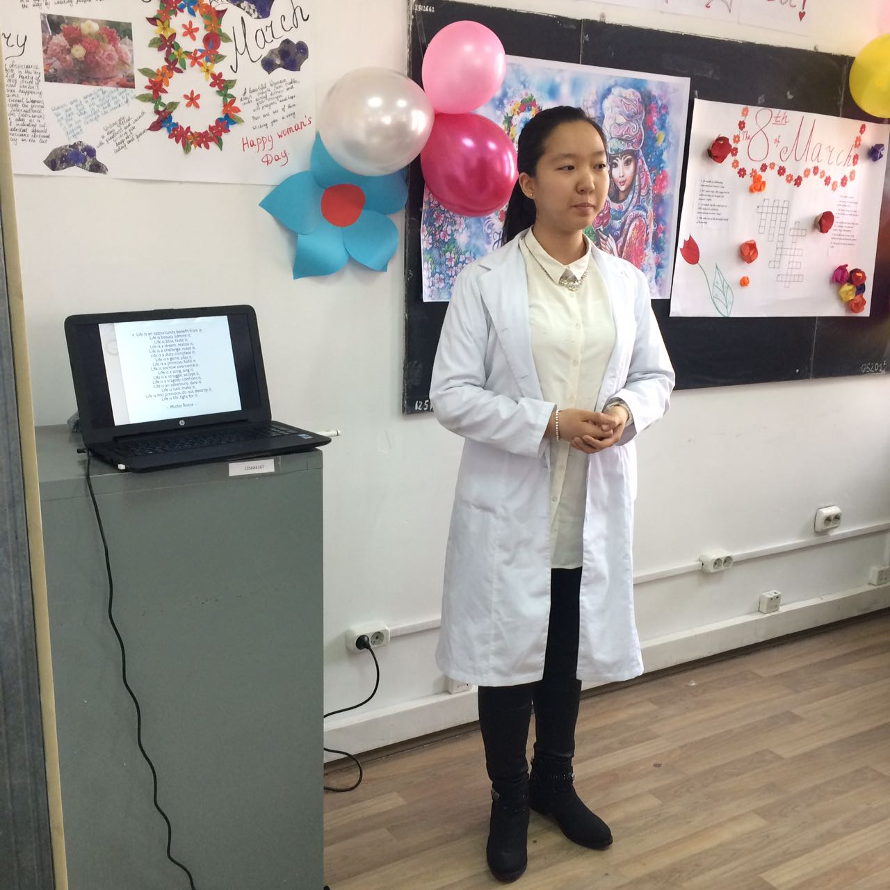 On the 9th of March, 2017 the teachers of the department of “Foreign Language and Professional Foreign Language” UnasbaevaZ.A., UltanbekovaG.A., Omarova A.A., held an optional lesson dedicated to the International Women’s Day on March 8 “Ана – өмір шуағы”.