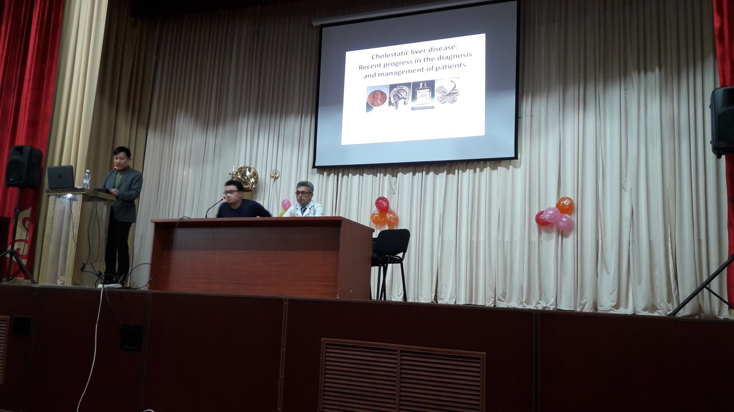 В рамках продолжающегося сотрудничества в ноябре 2017-2018 учебного года профессор Atsumasa Komori вновь прибыл с визитом в КазНМУ. Кафедрой «Внутренние болезни №1 с курсом гепатологии» на клинической базе совместно с визитингом профессором проведен круглый стол на тему «Холестатические заболевания печени-современная диагностика и лечение» с участием ППС, студентов и врачей ГКБ№1.