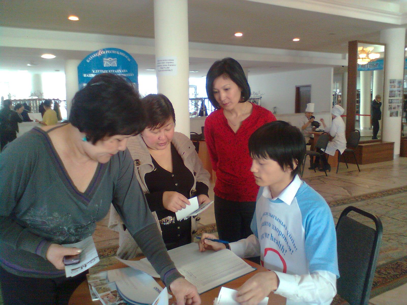 За 20 лет независимости в Казахстане отмечается системное развитие здравоохранения по всем направлениям. Реализация Государственной программы «Саламатты Қазақстан» позволит поднять медицину на качественно новый уровень в соответствии с мировыми стандартами. В рамках программы «Саламатты Қазақстан» руководством Национальной библиотеки РК и КазНМУ им. С.Д. Асфендиярова проведена выставка современной медицинской литературы с организацией круглого стола. Вначале открытия выставки студенты 3 курса Общей медицины провели доврачебный осмотр всех желающих – измеряли артериальное давление, давали рекомендации по гигиене ротовой полости, кожи, правилах питания и поддержке здорового образа жизни, определяли вес и рост, тестовый контроль содержания сахара и проверяли остроту зрения. Директор Республиканской  научной  медицинской библиотеки Ананбаев И.А. выступил с речью – «Самое большое достояние  человека это здоровье и чтобы сберечь здоровье у человека должны быть большие знания в медицине и все это есть в книгах. Я считаю неправильным мнение, что если есть интернет, то книги не нужны. Книги сохраняются тысячелетиями. В библиотеке есть книги  которым больше 200 лет. Дорогие читатели, в нашей библиотеке более 355 000 книг, каждой из них по 2-3 экземпляра, так что приходите и пользуйтесь этим драгоценным даром. Хочу сказать спасибо руководству КазНМУ им. С.Д. Асфендиярова, советнику ректора по воспитательной работе д.м.н., проф. Мустафиной Ж.Г. и всем тем, кто принимал участие в организации этой выставки, всего вам хорошего!». Затем было торжественное открытие выставки с обрезанием ленточки (Құлманбетов И.І., Оспанова Б.К., Мустафина Ж.Г.). После этого всех присутствующих пригласили посмотреть выставку книг. Далее всех пригласили за круглый стол (председатели круглого стола — Құлманбетов И.І. и Мустафина Ж.Г.). Профессор Мустафина Ж.Г. в своей вступительной речи отметила следующее — «Программа Саламатты Қазақстан закончится  в 2015 году. Среди народа не хватает информации, нет должной агитации этой программы, недооценивается  значение  профилактики, нет достаточных публичных лекций. В этой связи хотелось отметить инициаторов акции преподавателей модуля нормальной анатомии, особенно руководителя модуля Дюсембаеву А.Т. и завуча модуля Абилову А.А., а также студентов 3 курса Общей медицины. Активно участвовали наши студенты — активисты, лидеры, наше будущее. Большое спасибо всем преподавателям университета, колледжа, работникам библиотеки за участие в открытии книжной выставки и проведении круглого стола». Студенты 3 курса Общей медицины выступили с докладами. В ходе дискуссии проф. Құлманбетов И.І. отметил – «Наши дети сидят в компьюторах, отдаляются от внешнего мира, не читают книги, а ведь это наше будущее. Кроме того, необходимо обратить внимание на питание, лечебное действие наших народных традиционных блюд, таких как талқан. Необходимо улучшить питание и эти вопросы нужно поднимать». В конце круглого стола все участники отметили, что наше здоровье и  здоровье близких в наших руках, нельзя халатно относиться к своему здоровью и тогда все мы будем здоровы.