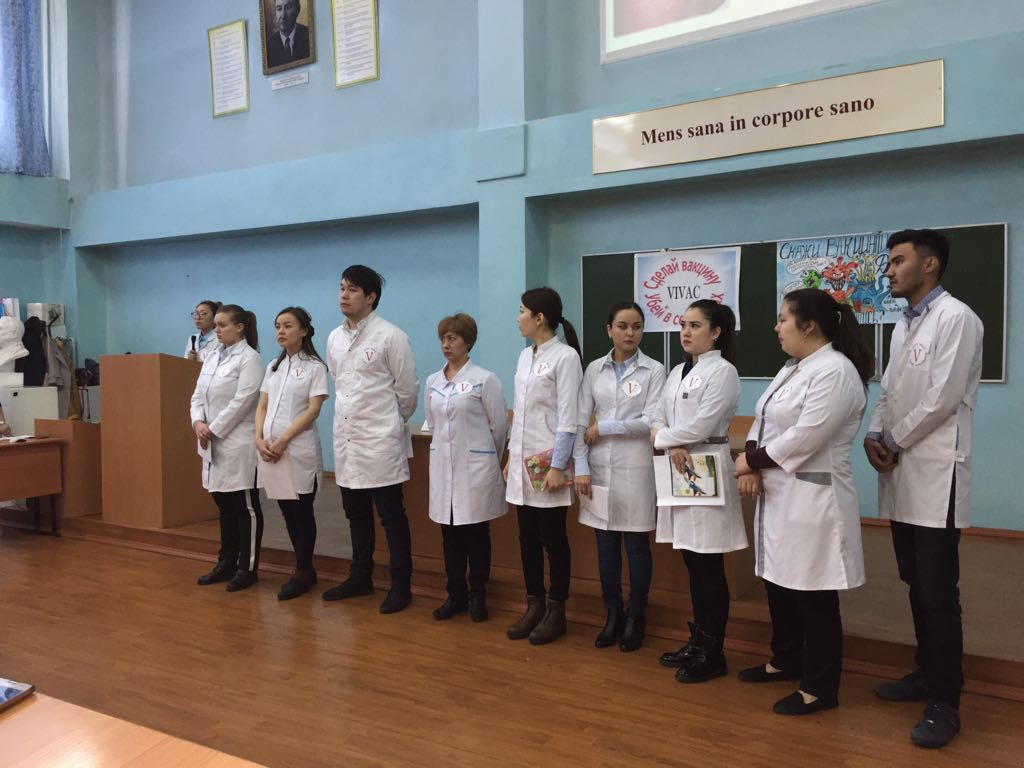 Вакцинацияның тиімділігін құптап шыққан ЖММ  558 топ студенттері(команда «ViVac») ,қазіргі таңда жұқпалы және тропикалық аурулар кафедрасында оқиды (оқытушы  асс. Шоколакова А.К.).  вакцинацияға қарсы  тұжырымдарды ЖММ 555 тобының студенттері қорғады(команда «NoVac»),олар балалар жұқпалы аурулар кафедрасында оқиды(преподаватель асс. Литош Э.С.). Және де тұмаудың иммунопрофилактикасы жайлы да дебат өткізілді :«За»  и «Против».