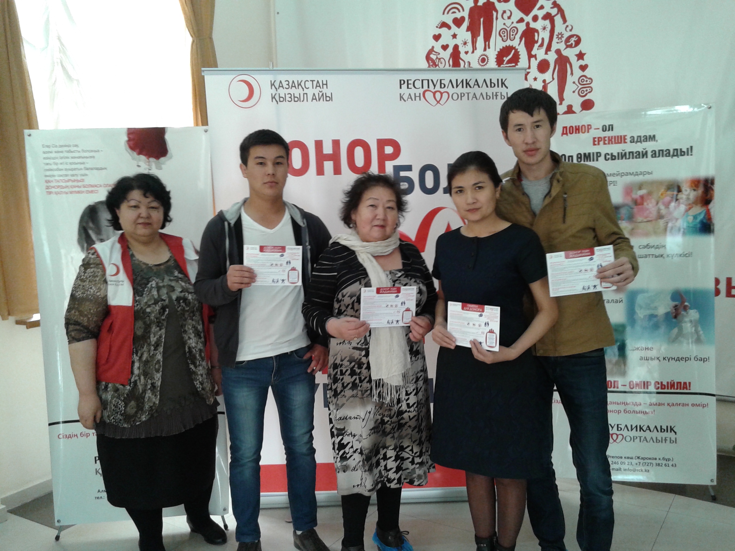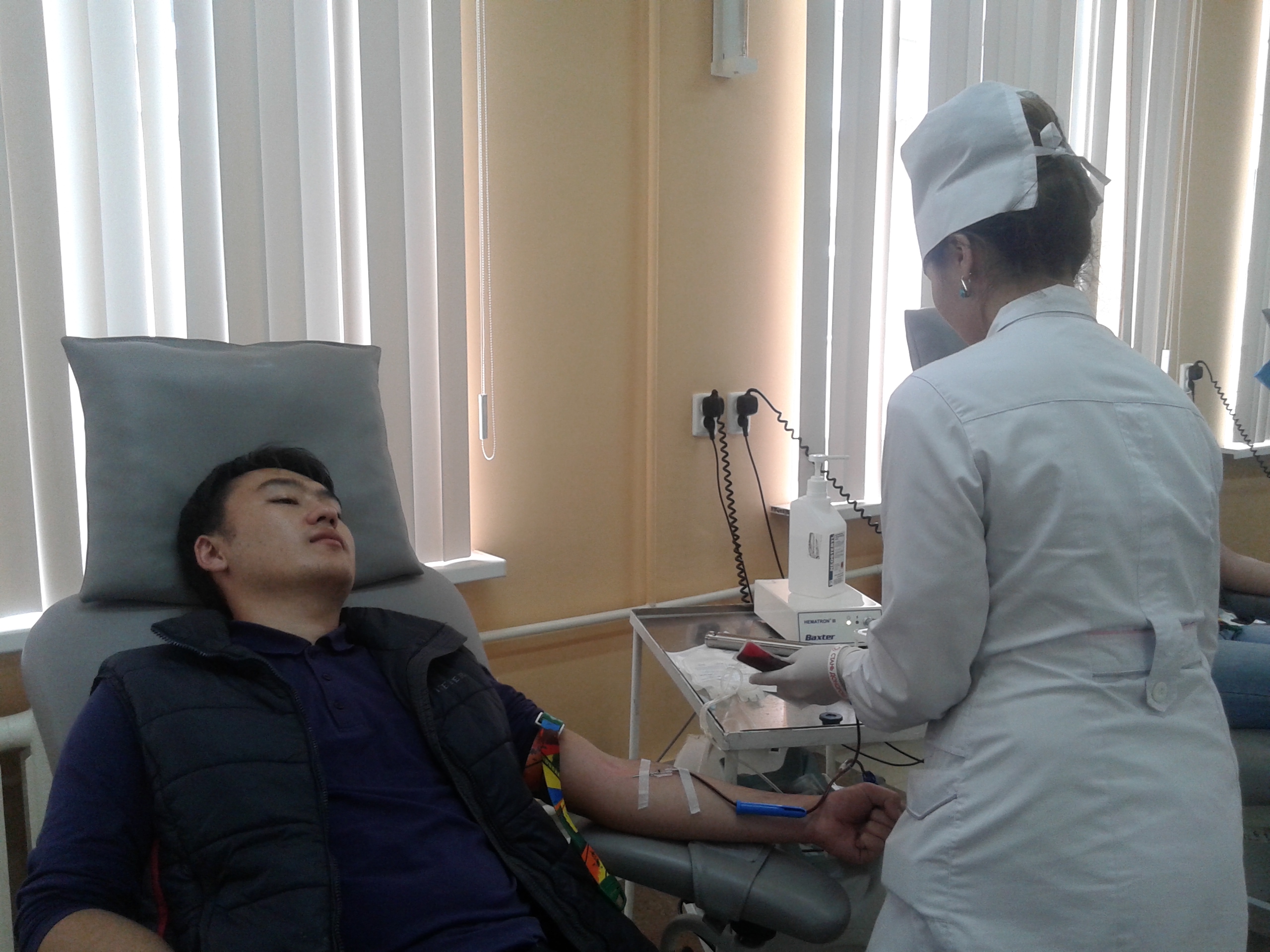 В Республиканском центре крови бесплатно сдали кровь студенты 5 курса 009 2 факультета «Общая медицина»: Сагатбаев Жасулан Салихжанович, Сагындыков Марат Жумагалиевич, Хамитов Адлет Калауович, преподаватель ассистент кафедры нервных болезней Смагулова Алия Рафиковна.