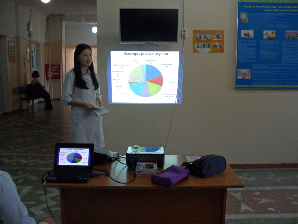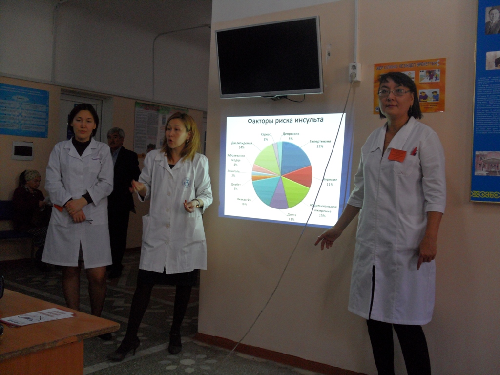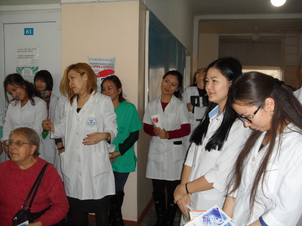 Сотрудниками кафедры скорой и неотложной медицинской помощи в ГКП на ПХВ «Поликлиника ВОВ» был проведен флэш-моб «Инсульт – это