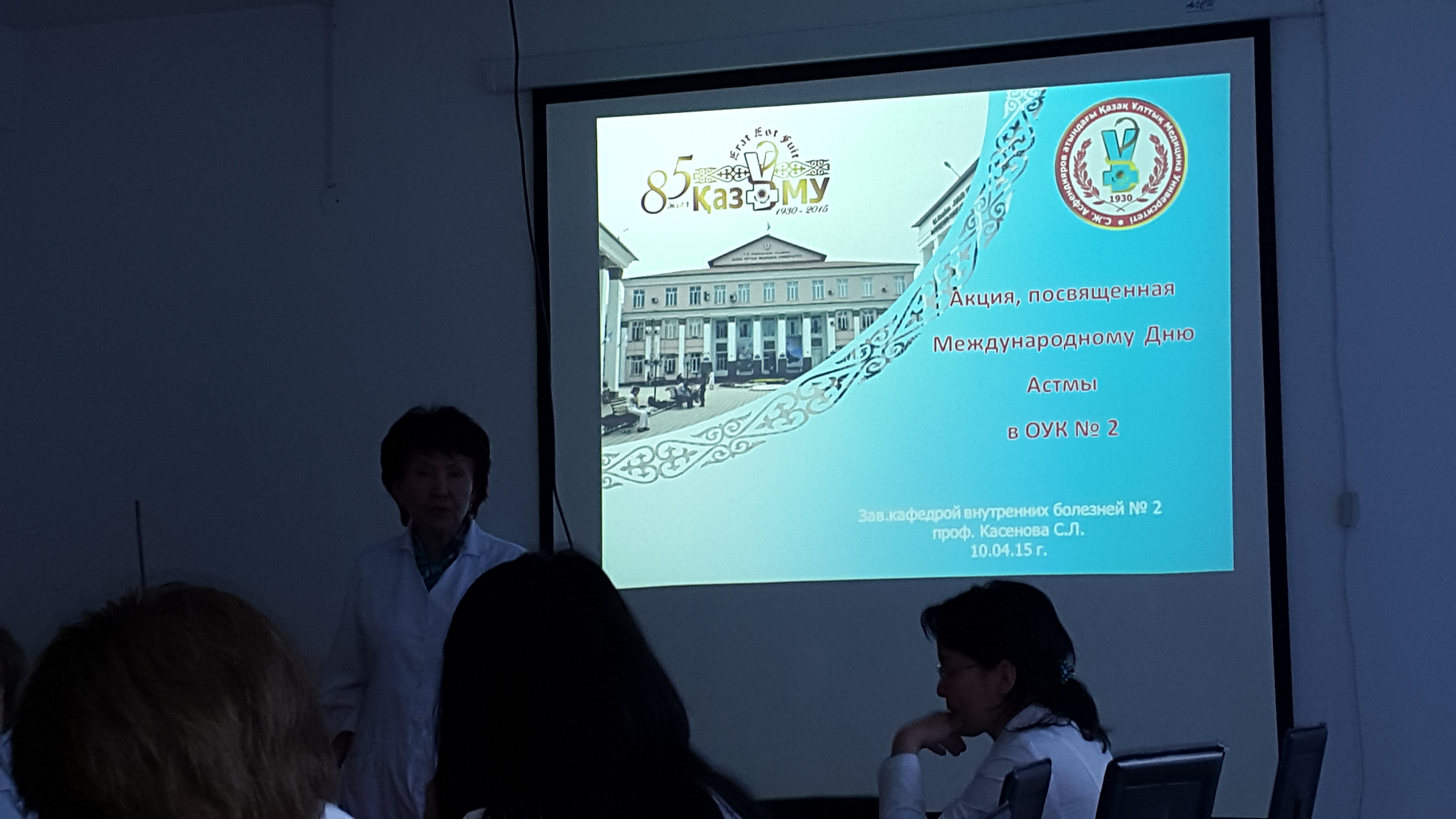 О  проведении акции были информированы Управление здравоохранения г. Алматы и    поликлиники города. На клинической конференции кафедра подготовила доклад по данным  международного  руководства  Глобальной Инициативы по Астме (GINA, 2014 г.). Присутствовало 35 врачей клиники. За период акции проконсультировано 32 пациента, включая студентов КазНМУ и энергетического института,   проведено 21 спирометрическое исследование  и столько же  сеансов небулазерной терапии с  препаратом «Флуимуцил».