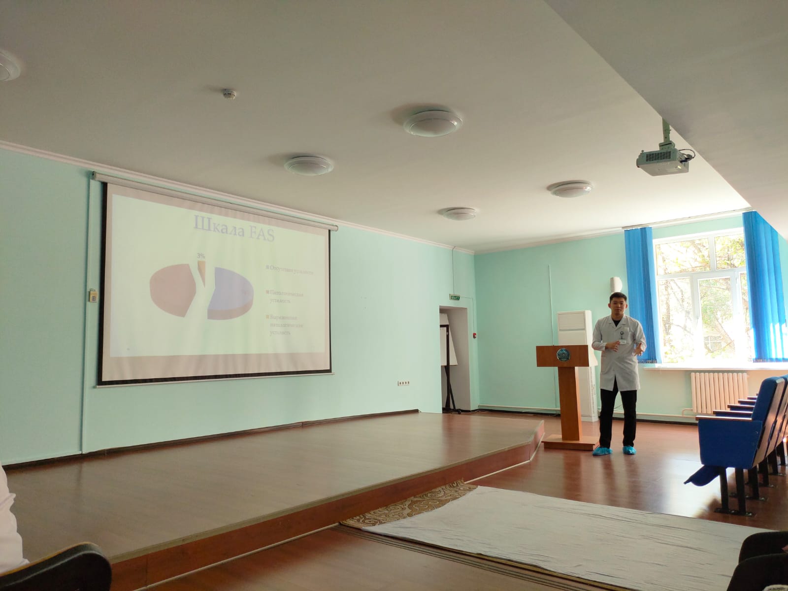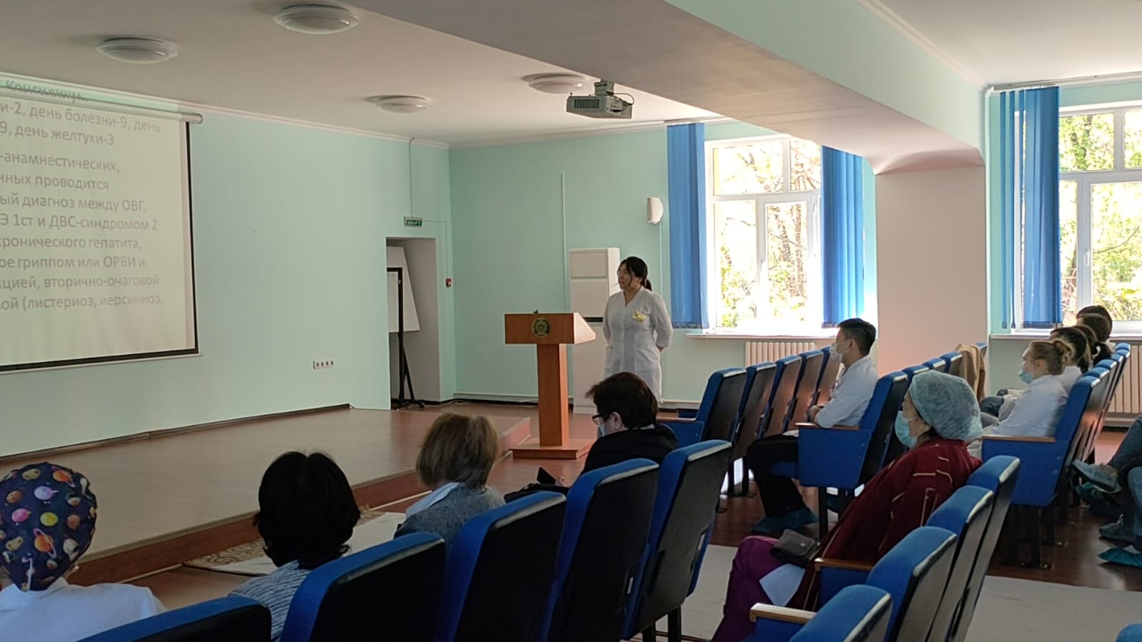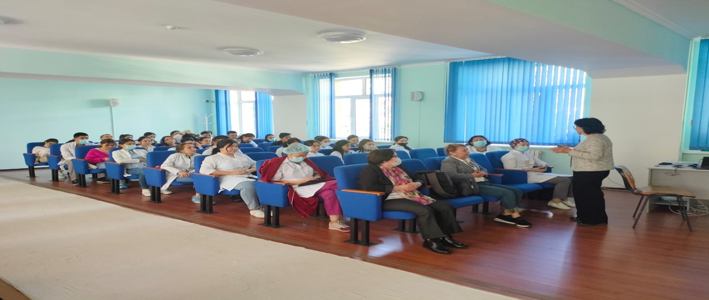 Ғылыми – зерттеу жұмысының нәтижелерімен баяндама жасағандар : ЖТД – 1 бағыты бойынша интернатура 2-курс Югай С. және «Ересектер және балалардағы инфекциялық аурулар» мамандығы бойынша резидент 1 – курс Ботаспаева А. Баяндамалар мазмұнды, танымдық және ғылыми түрде болды.