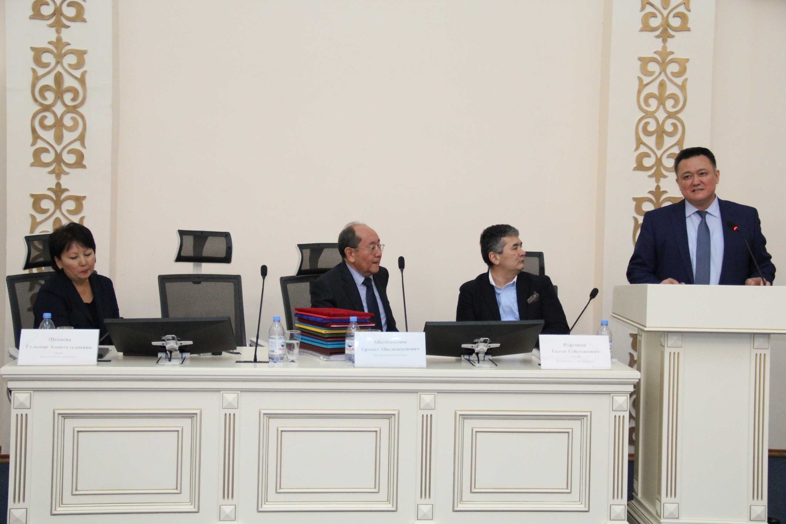 С поздравительным словом выступил ректор КазНМУ им.С.Д.Асфендиярова д.м.н., профессор Нургожин Т.С., а также гости — ректор Казахско-Российского медицинского университета д.м.н., профессор Джайнакбаев Н.Т., директор филиала фонда социального медицинского страхования по г.Алматы, д.м.н. профессор Абильдаев Т.Ш.