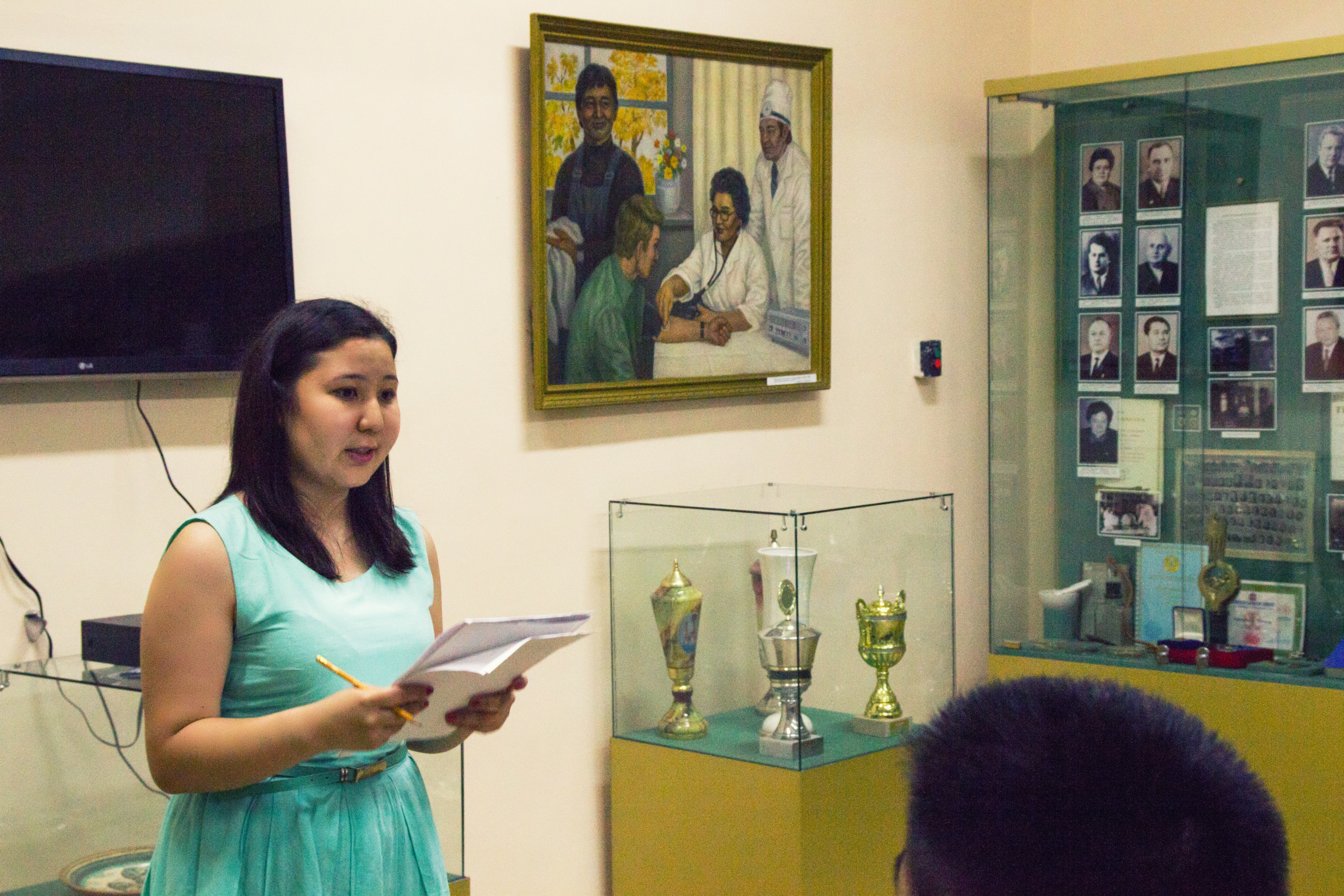 По этому случаю был подготовлен стенд памяти патофизиолога-фронтовика, обладательницы Ордена «Красная звезда», Медали за оборону Сталинграда, Медали за победу над Германией, Мамановой Халиды Есенгуловны.
