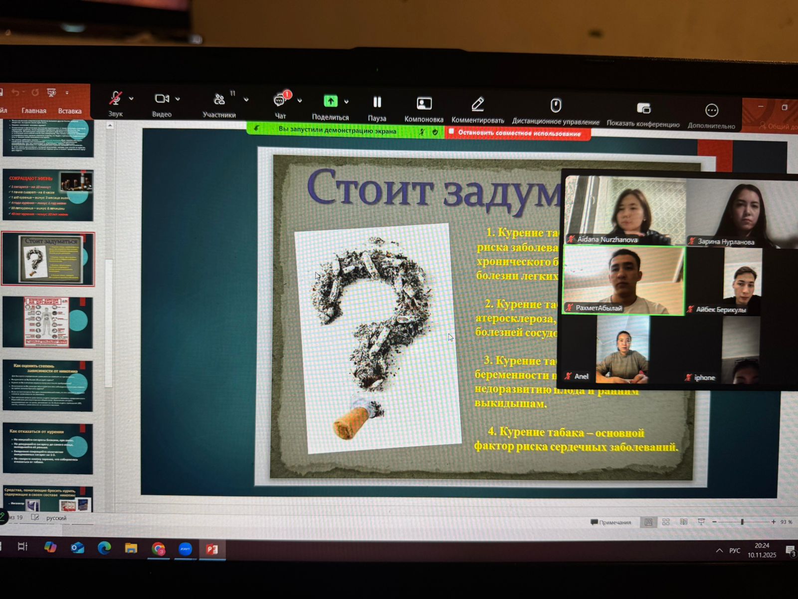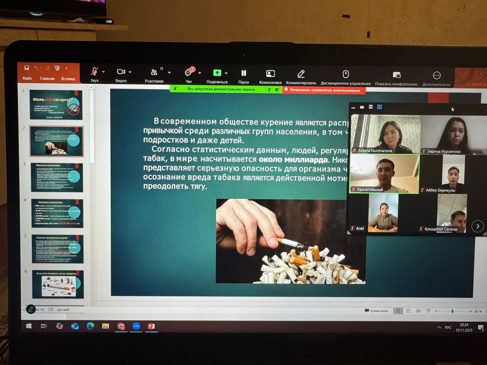 - Спикеры раскрыли тему мероприятия, отметил актуальность проблемы табакокурения и наркомании среди молодёжи, привели краткие статистические данные и акцентировал внимание на необходимости ранней профилактики.