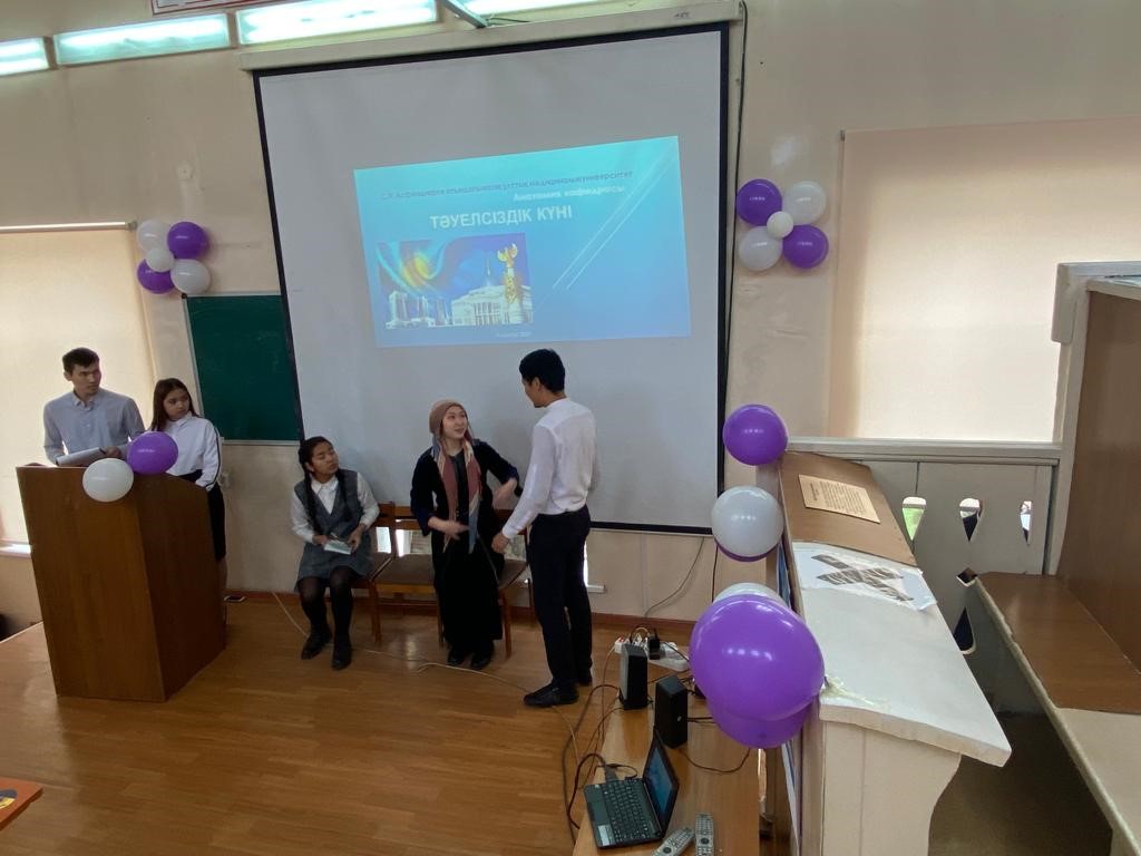 - С докладами выступили студенты: Темирбекова Динара, Таласова Аружан «Тәуелсіздік тарихы».