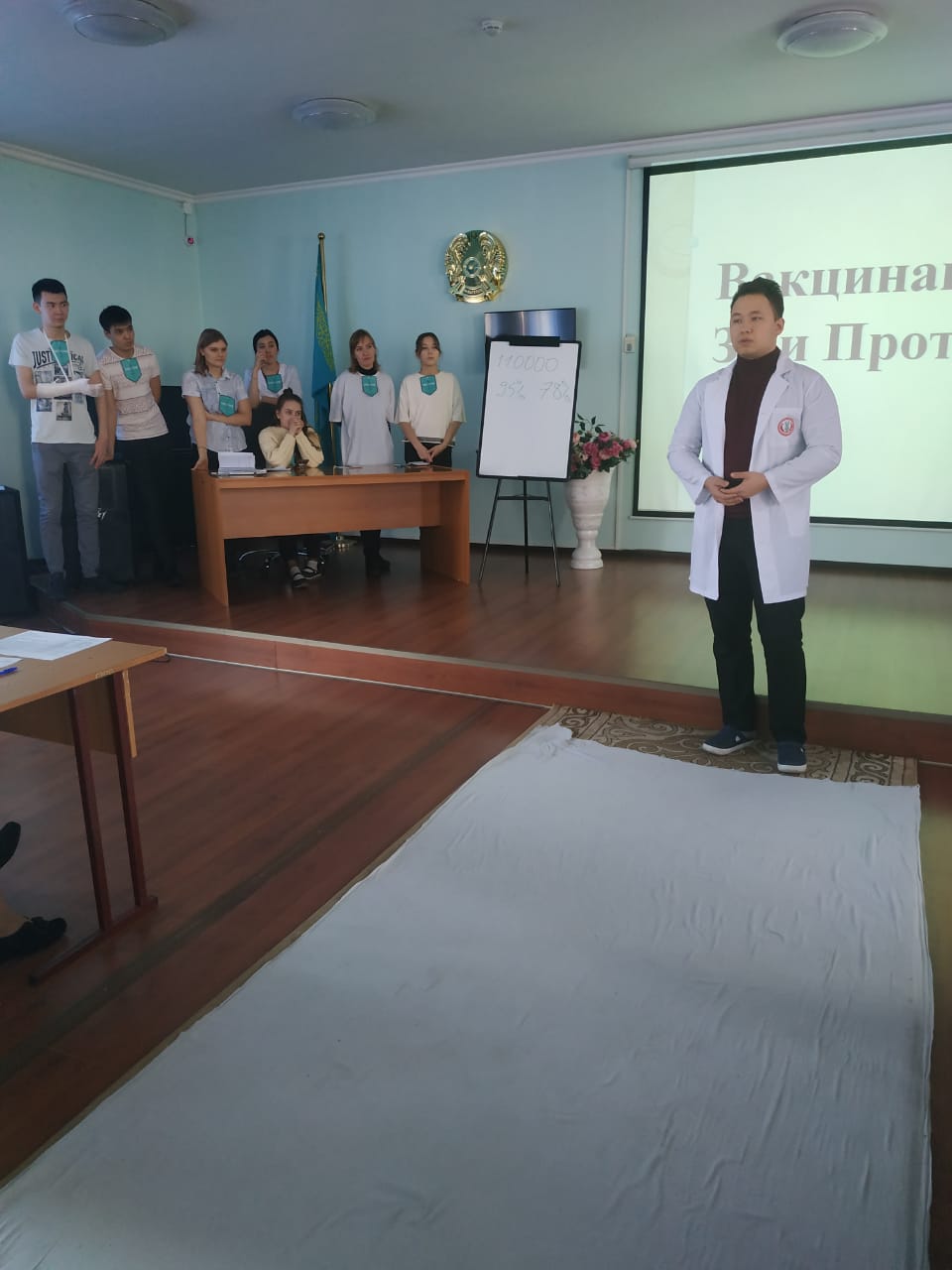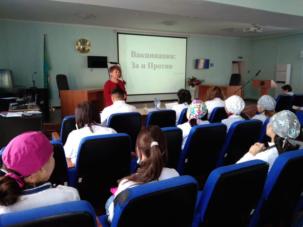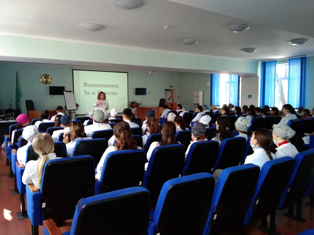 ППС кафедры инфекционных и тропических болезней и кафедры общей врачебной практики 29.01.2020 года провели студенческую конференцию в формате дебатов на тему «Вакцинация: За и Против» в рамках реализации ОСМС. В дебатах участвовали студенты 034 – 1 и 032 – 1 группы факультета «Общая медицина». Дебаты прошли в несколько этапов. Жюри в составе зав.кафедрой, профессора Дуйсеновой А.К., заслуженного врача-инфекциониста Дербисалиной Ж.А., а также интернов 6 курса специальности «Общая медицина» Мелис А. и Адалкызы Ш. оценивали выступление студентов.