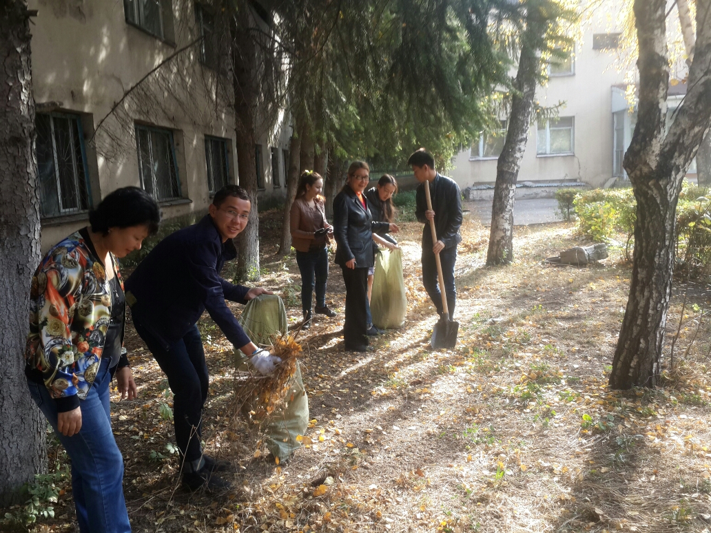 В мероприятии, стартовавшем во дворе железнодорожной больницы г. Алматы, расположенной по улице Акан Серы напротив универсама «Акжол», приняли участие сотрудники модуля нормальной физиологии и студенты III курса факультета «Общая медицина», относящиеся к центру интегрированного обучения (директор центра интегрированного обучения профессор Г.М.Есенжанова). Участники мероприятия были обеспечены необходимым инвентарем – перчатками и мешками для сбора мусора, вениками, лопатами.