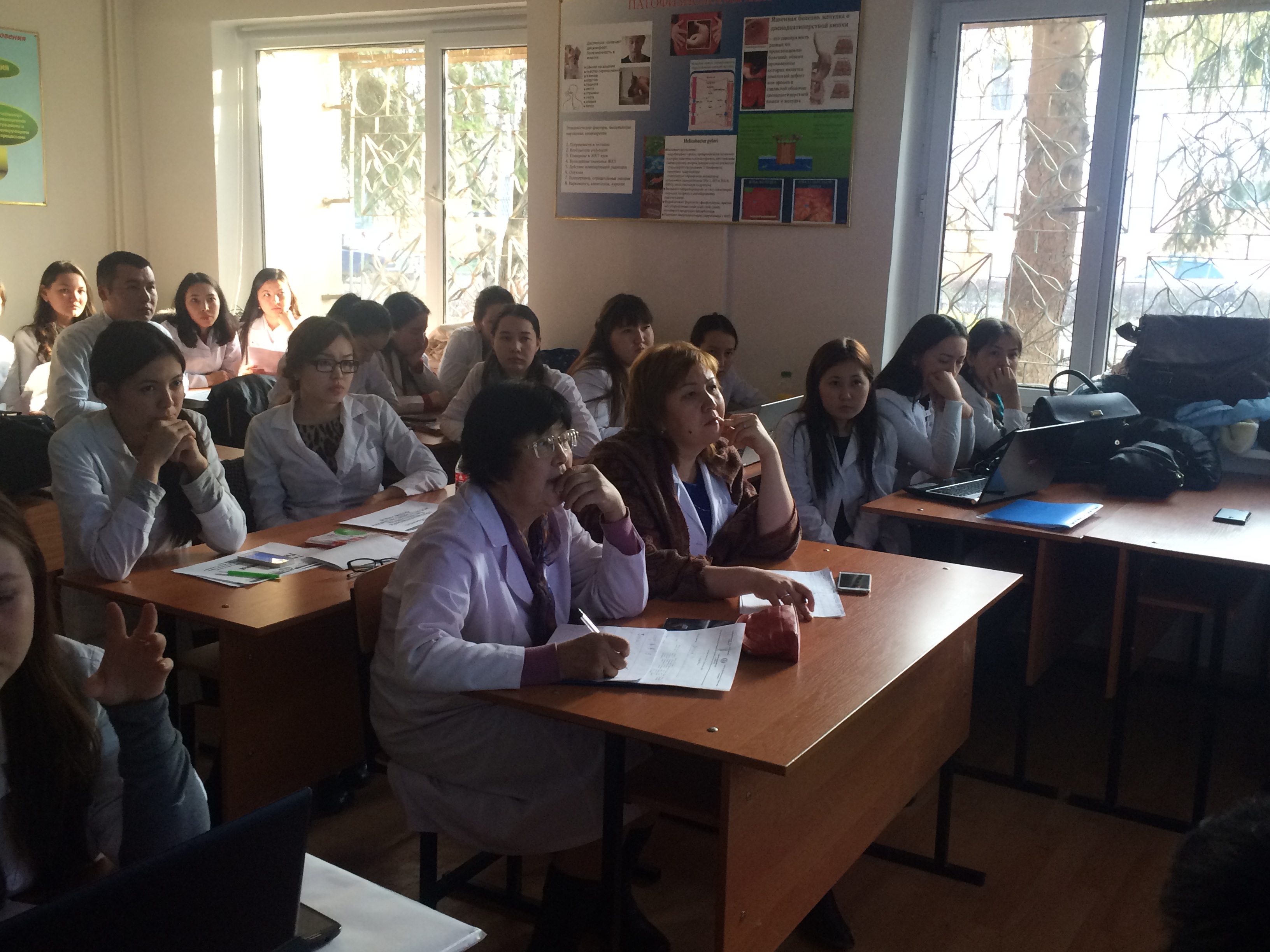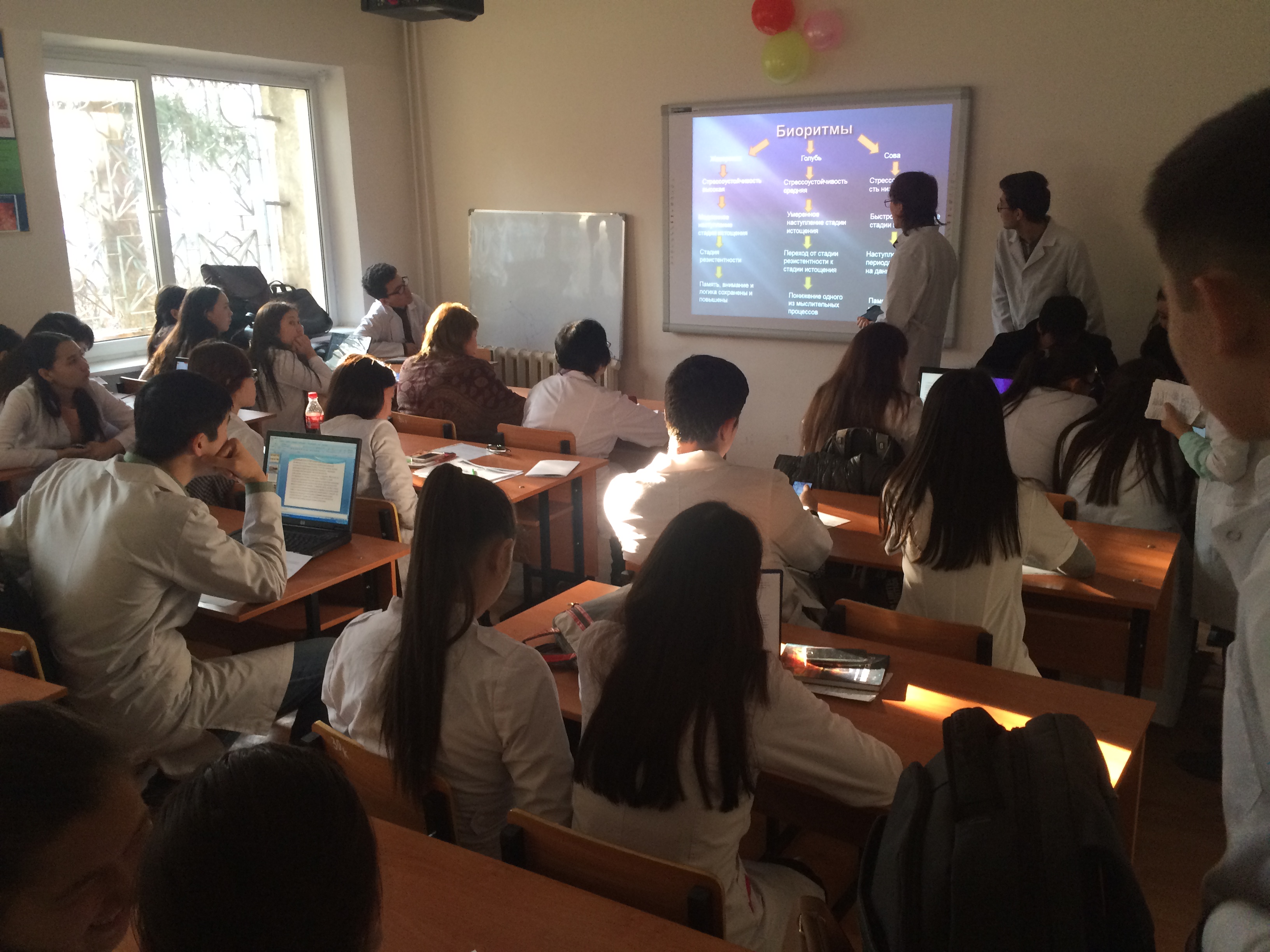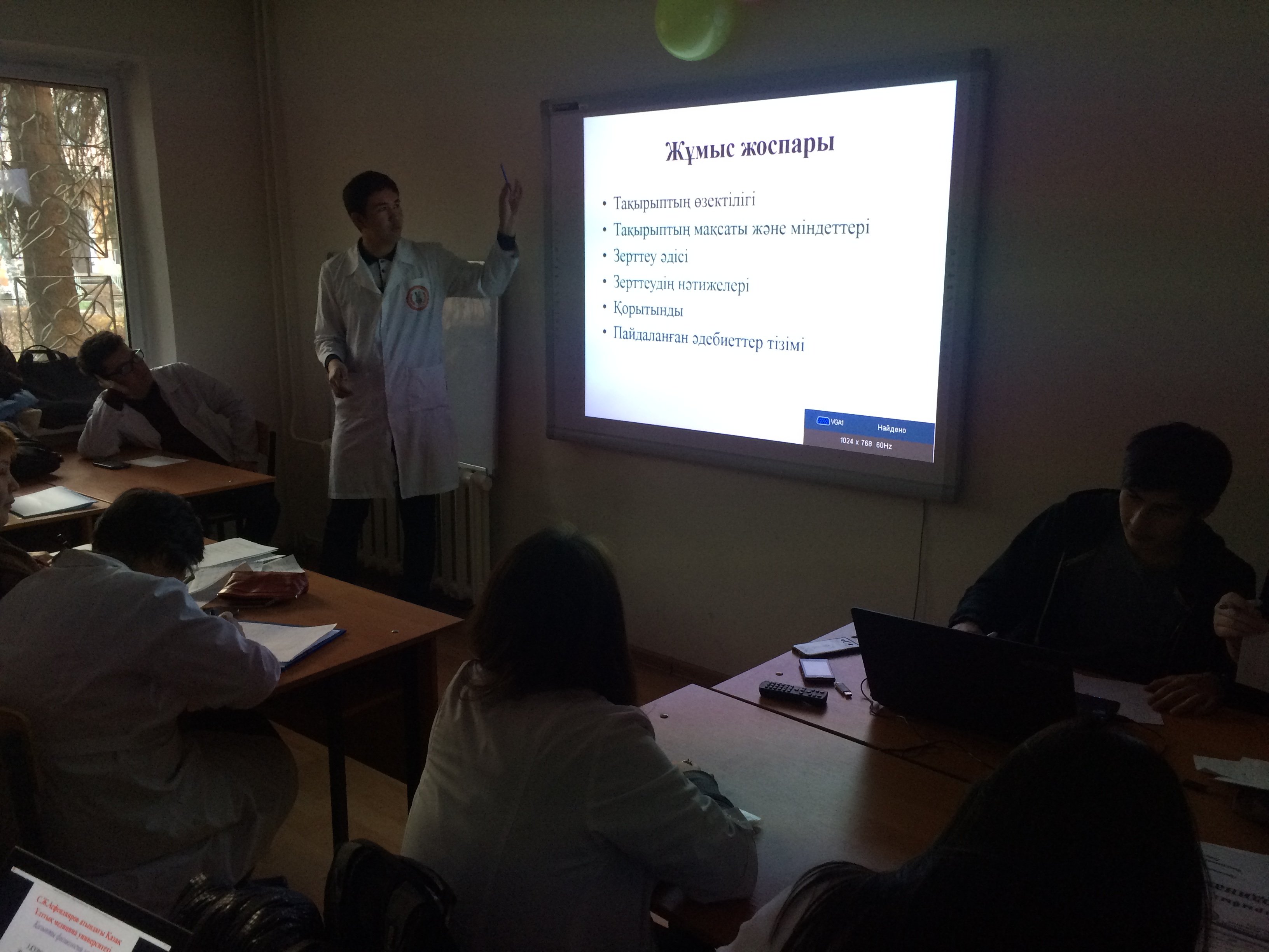 28 ноября 2015 года студентами 13-024-02 и 13-030-02 группы III курса факультета «Общая медицина» совместно с ППС модуля нормальной физиологии был организован и проведен I тур НСК модуля нормальной физиологии в аудитории №40 с приглашением проректора по учебно-воспитательной работе К.А.Тулебаева, начальника управления по социально-воспитательной работе М.Т.Султановой, директора департамента «Базовых дисциплин» К.К.Мустафиной, директора центра интегрированного обучения Г.М.Есенжановой, начальника ОП и КУП (учебная часть) К.Е.Куангалиевой, декана факультета «Общая медицина» Р.Т.Джумашевой, сотрудников деканата факультета «Общая медицина»: заместителя декана 3 курса и по воспитательной работе Ж.Ж.Курмангалиевой.