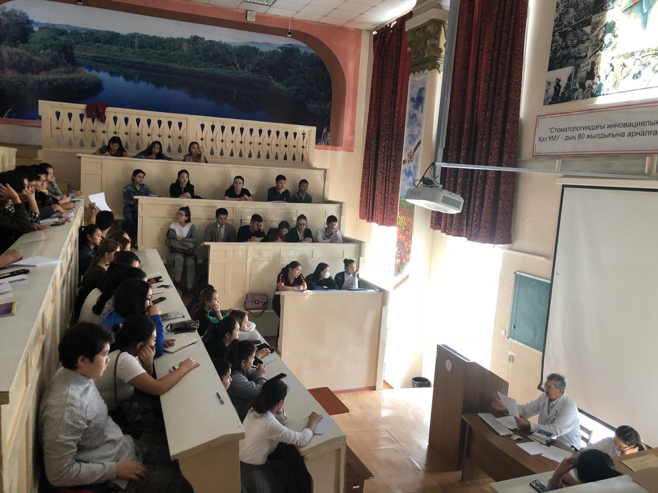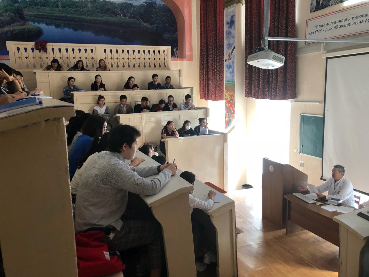 22 сентября 2018 года на кафедре нормальной анатомии ( зав. доцент Ахмад Н.С). прошло первое заседание НСК «Анатом». Руководитель НИРС кафедры : профессор Жаныбеков Д.Е. Присутствовали более 90 студентов младших курсов, преимущественно студенты ОМФ, а также молодые ученые кафедры. На заседаний НСК были заслушаны следующие вопросы: 1-организационный вопрос. 2- утверждение плана НИРС на учебный год. 3-разное. По первому вопросу: председателем НСК «Анатом» выбран студентка 3-го курса ОМФ Қайшыбай Ақеркем. Секретарем студентка 2-го курса ОМФ Бақытова Алия. По второму вопросу: заслушан и утвержден план НИРС и молодых ученых на 2018-2019 уч.гг. По третьму вопросу: студентам представлены темы научно-исследовательских работ. К информации прилагаются фотодокументы.