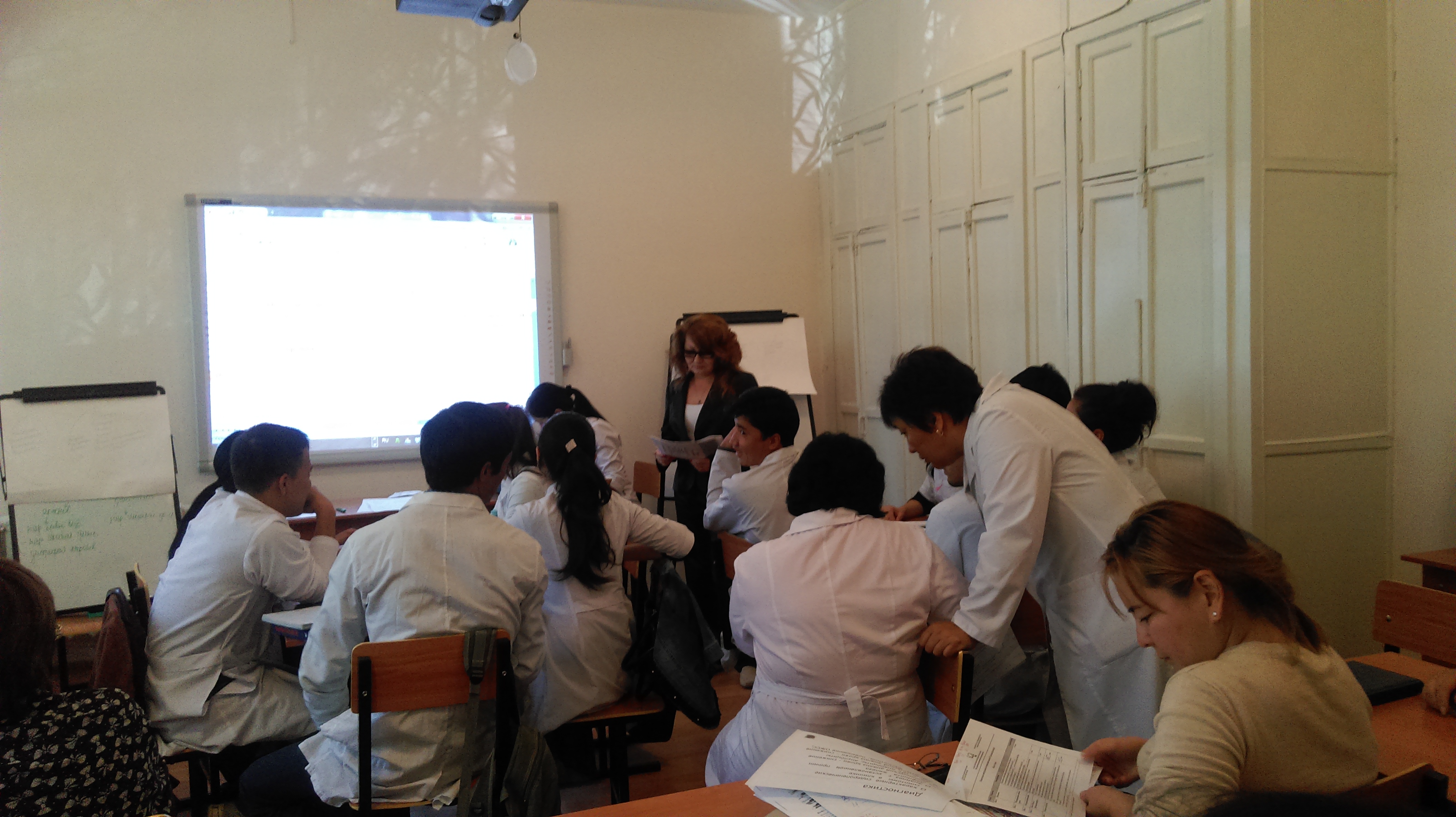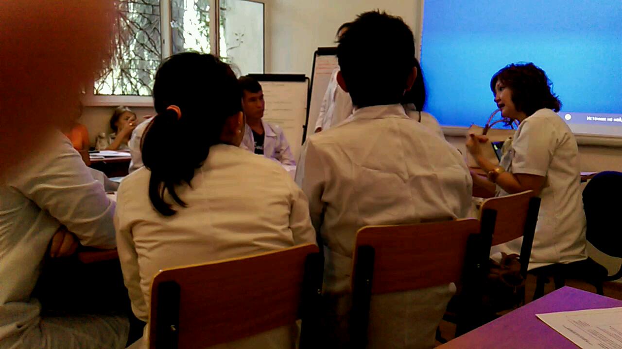 С 25.08. по 10.09.14г. профессорско-преподавательский состав кафедр и модулей, входящих в центр интегрированного обучения, прошли повышение квалификации по активным методам преподавания. В рамках повышения квалификации сотрудниками разработано методическое обеспечение по 6 темам, необходимые для занятий одним из интерактивных методов по модулю «Нервная система» со студентами 3 курса факультета общей медицины. Так, доцентом кафедры пропедевтики внутренних болезней А.К. Ижановой проведен разбор клинического случая на тему: «Головокружение» в течение 3-х занятий проблемно-ориентированным методом. Проведено интегрированное занятие по дисциплинам фармакология и патологическая физиология в виде разбора кейса по теме: «Нарушение мозгового кровообращения» руководителем модуля фармакологии доц. Айтжановой Г.Б., Изатовой А.Е. совместно с руководителем модуля патологической физиологии доц. Толепбергеновой М.Ж., Ермаганбетовой А.Ш., был применен метод CBL — обучение на основе клинического случая. Также занятия проводили командным методом (ТBL) сотрудники модуля гистологии (к.б.н. Тусуповой Н.М., Мулькибаевой Ш.Ш., Алсеитовой Ф.Д.) на государственном языке, преподаватели модулей нормальной физиологии (к.м.н. Росляковой Е.М., доцент Бисеровой А.Г.) и нормальной анатомии (доцент Исабековой У.А.) и патологической анатомии (к.м.н. Искаковой Э.Е., Анаятовой Б.Ж., Серикбай М.К.) на русском языке. На занятиях присутствовали все сотрудники, проходящие повышение квалификации. После каждого занятия проводился дебрифинг, разбирались преимущества, недостатки занятия, даны рекомендации для повышения качества занятия.