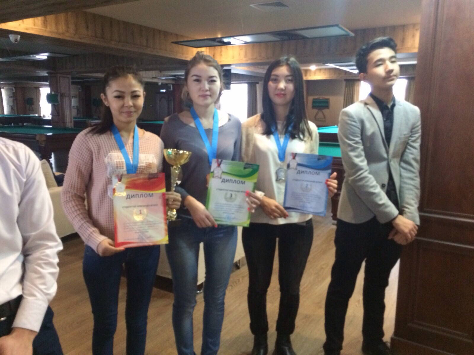 Воткрытом Республиканском турнире среди студентов по бильярдному спортустудентка ІІ курса факультета общей медицины Бозтай Балнұр заняла 2 место в личном зачете. Тренер ст. преподаватель Кален Ф.
