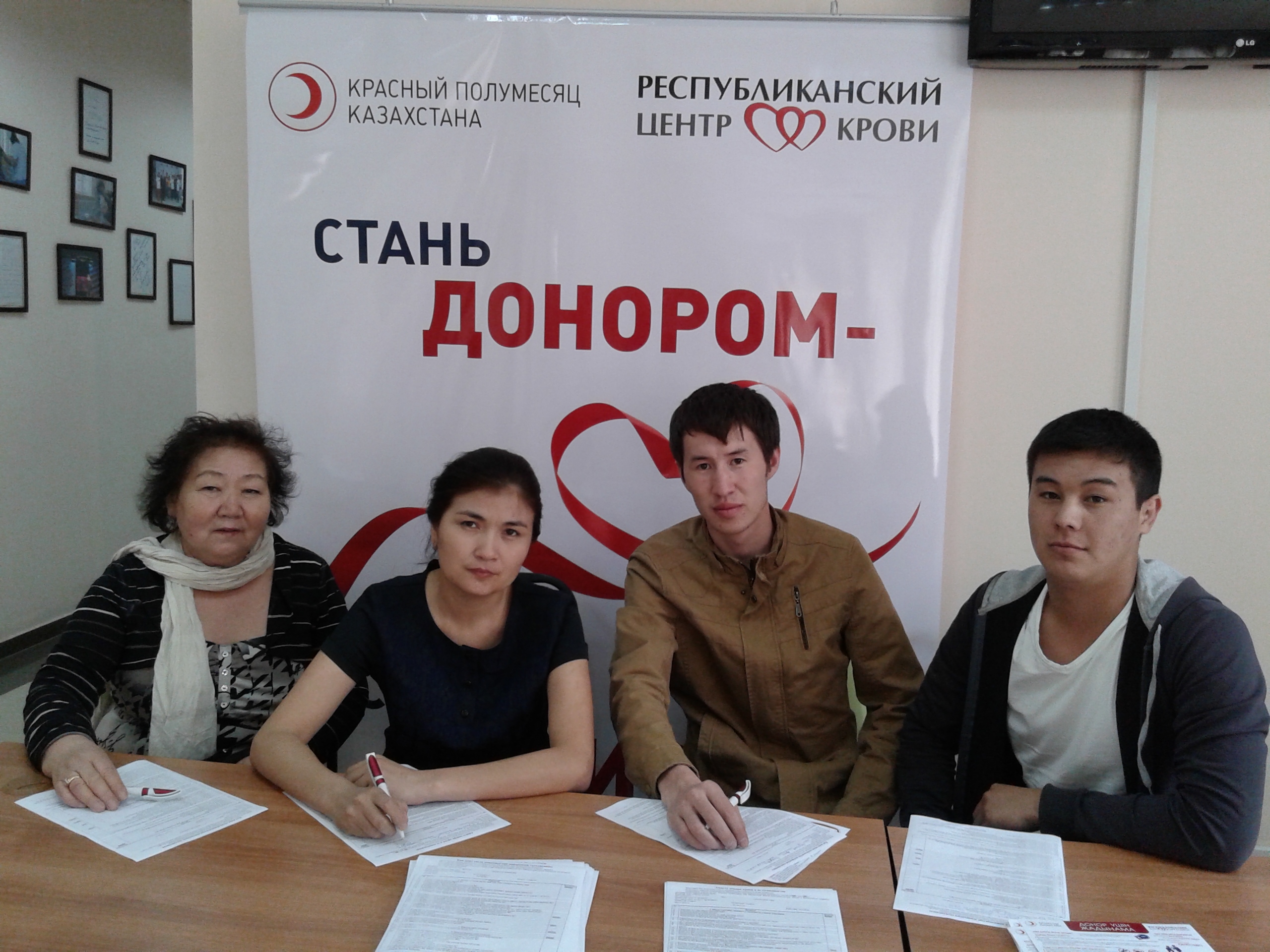 В Республиканском центре крови бесплатно сдали кровь студенты 5 курса 009 2 факультета «Общая медицина»: Сагатбаев Жасулан Салихжанович, Сагындыков Марат Жумагалиевич, Хамитов Адлет Калауович, преподаватель ассистент кафедры нервных болезней Смагулова Алия Рафиковна.