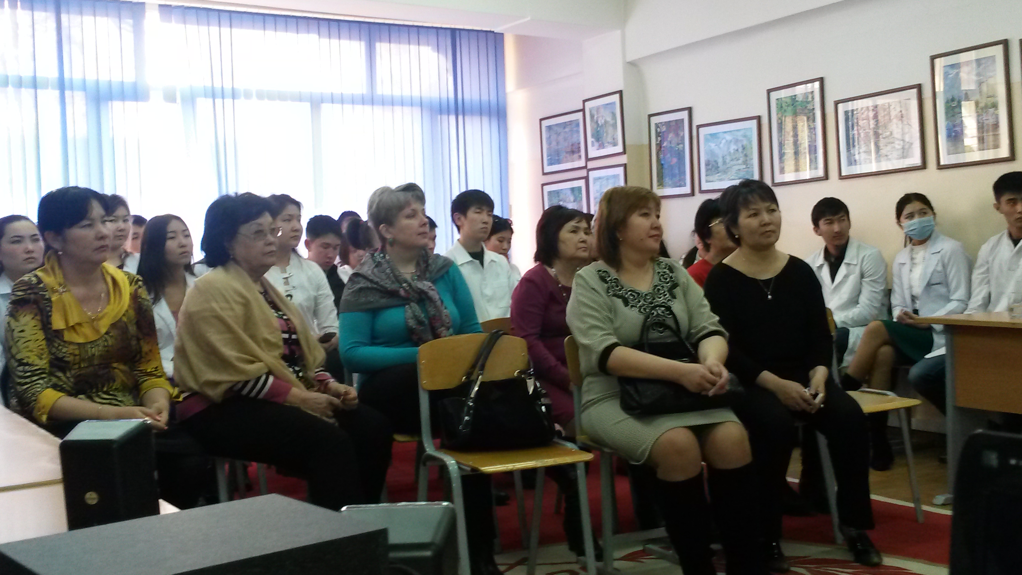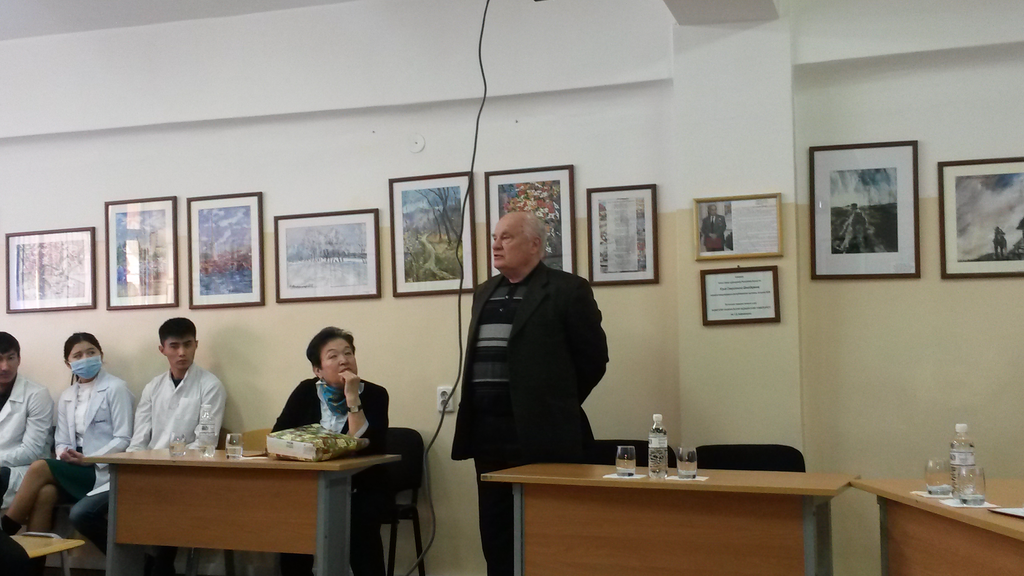 Заседание началось с доклада студентки1 курса факультета ОМ14-042 Ерланова Еркежано трудовой деятельности Почетного профессора КазНМУ Х.К. Сатпаевой. Ученица профессора ст.преподаватель модуля валеологии Жетписбаева Г.Д. рассказала о работе Ханисы Канышевны в тылу в годы Великой Отечественной войны.Далее выступила профессор Мустафина Ж.Г.,которая рассказала о доблестном труде казахстанцев в тылу в годы ВОВ и об участии Ханисы Канышевны. За работу в тылу она была награждена медалью «За доблестный труд в тылу в годы ВОВ 1941-1945гг.».В беседе о научной, педагогической деятельности профессора Сатпаевой Х.К. приняли участие декан факультета фармации профессор Датхаев У.М., профессор кафедры нормальной физиологии Соколов А.Д. и сотрудники модуля нормальной физиологии доц. Байжанова Н.С., доц. Хасенова К.Х.Сын профессора Сатпаевой Х.К. к.ф.н. Жармагамбетов Н.К.поделился воспоминаниями мамы.