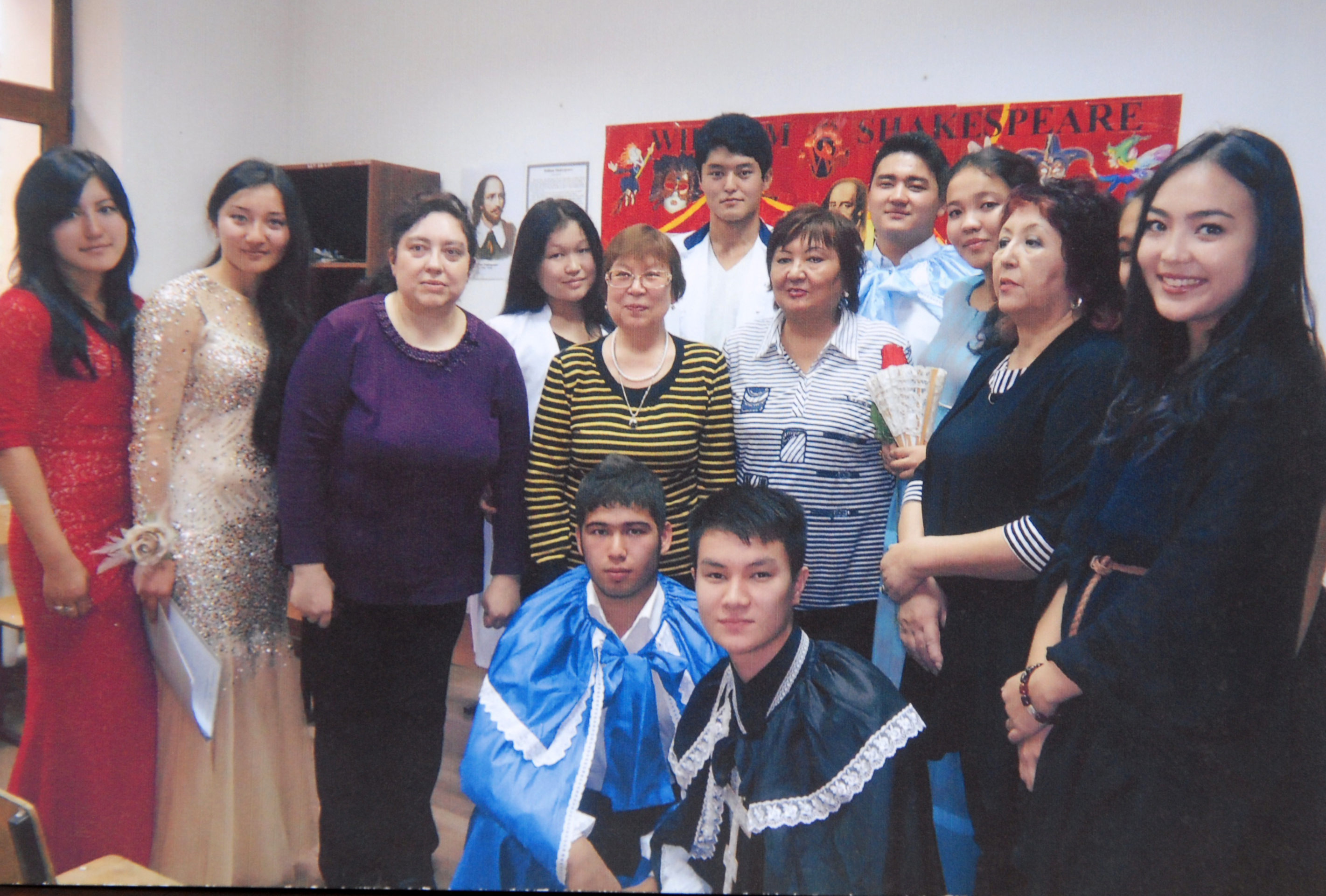 Әдеби- кеште студенттер В. Шекспирдің әйгілі трагедиялары мен комедияларынан үзінді көрсетті: «Макбет», «Рамео және Джульетта», «Жазғы күнгі түс» онымен қатар №130, 154 сонеталарын оқыды.