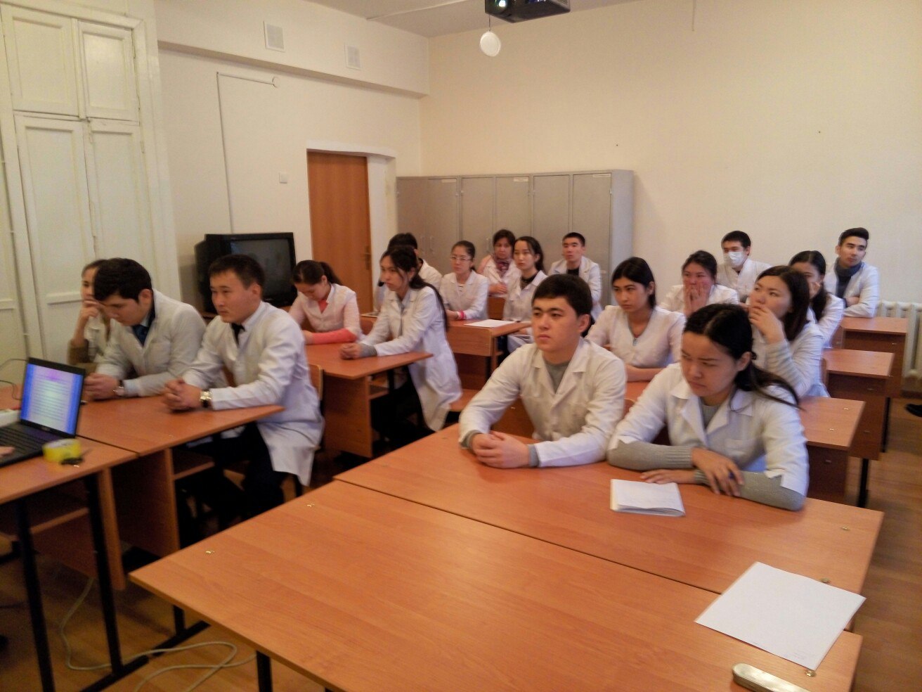 17.11.2015ж сағат 1000 Алматы қаласы Теміржол ауруханасында Гистология модулінің жетекшілігімен жалпы медицина факультетінің 13-27-01, 02 топ студенттері ашық сабақ өткізді. 2015жылды қорытылай келе Алматы қаласында өрт жағдайлары жиілеуіне байланысты «Өрт қауіпсіздігіне қойылатын талаптар» атты тақырып қарастырылды. Өрт кезіндегі ережелер, өзін-өзі ұстау психологиясы, алғашқы іс-әрекеттер жайлы мәліметтер айтылды. Өрт кезіндегі іс-әрекеттерді білу дәрежесін анықтау мақсатында сұрақ-жауап жүргізілді.
