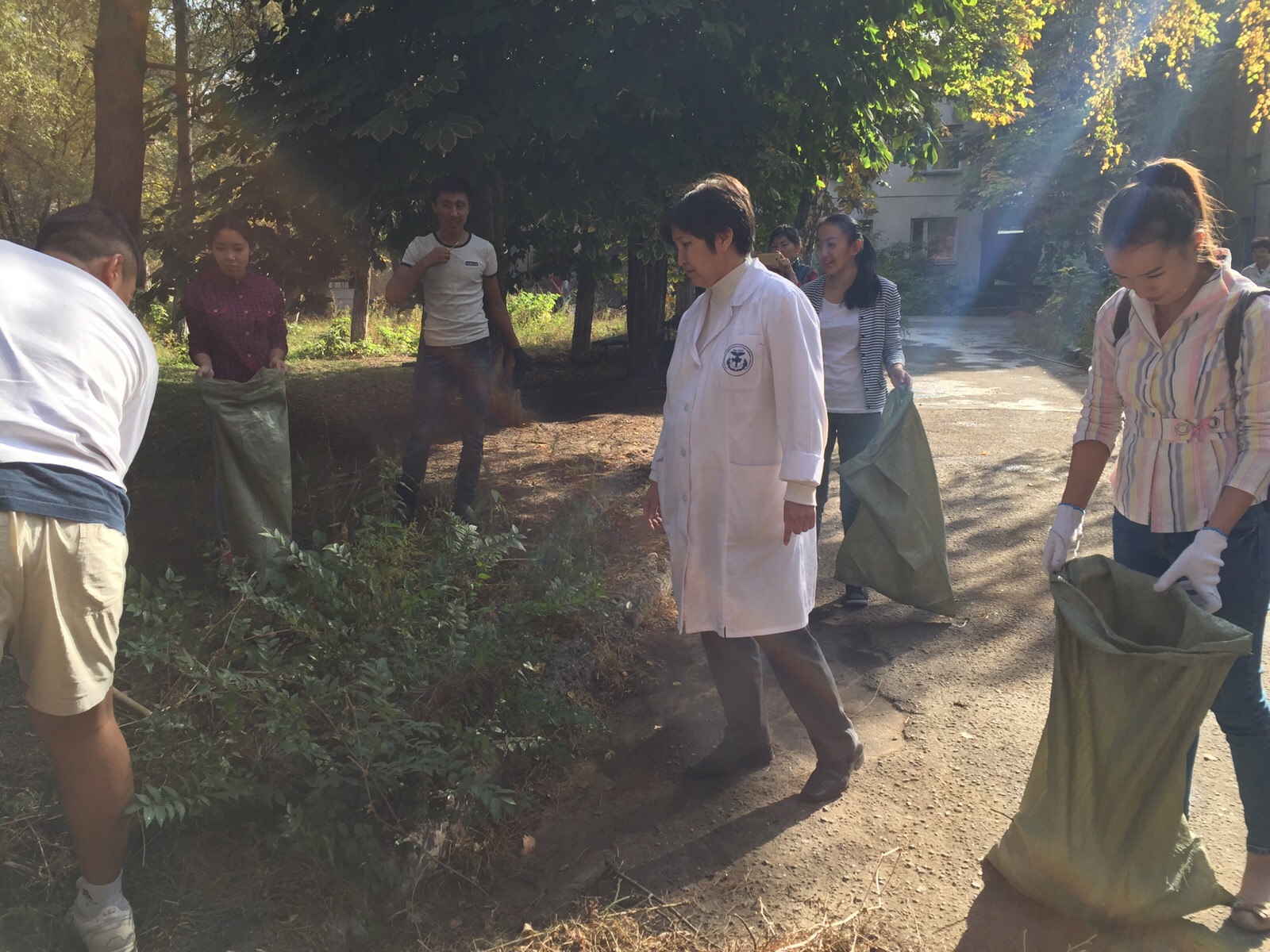 -«Тазалық-денсаулық кепілі»-деп, халқымыз бекер айтпаған. Осы орайда біз С.Ж.Асфендияров атындағы Қазақ Ұлттық Медицина Университетінің интеграциялық оқу орталығында жалпы медицина факультетінің 3-курс студенттері (18-1,2; 20-1,2; 25-1,2; 27-1,2 топтар) және гистология модулінің оқытушылар ұжымы жалпы қалалық сенбілік өткіздік. Сенбілік бұл- қаланың тазалығы үшін мектеп оқушылары, студенттер, кәсіптік мекемелердің қызметкерлерімен ұйымдастырылған қоғамдық жұмыс.