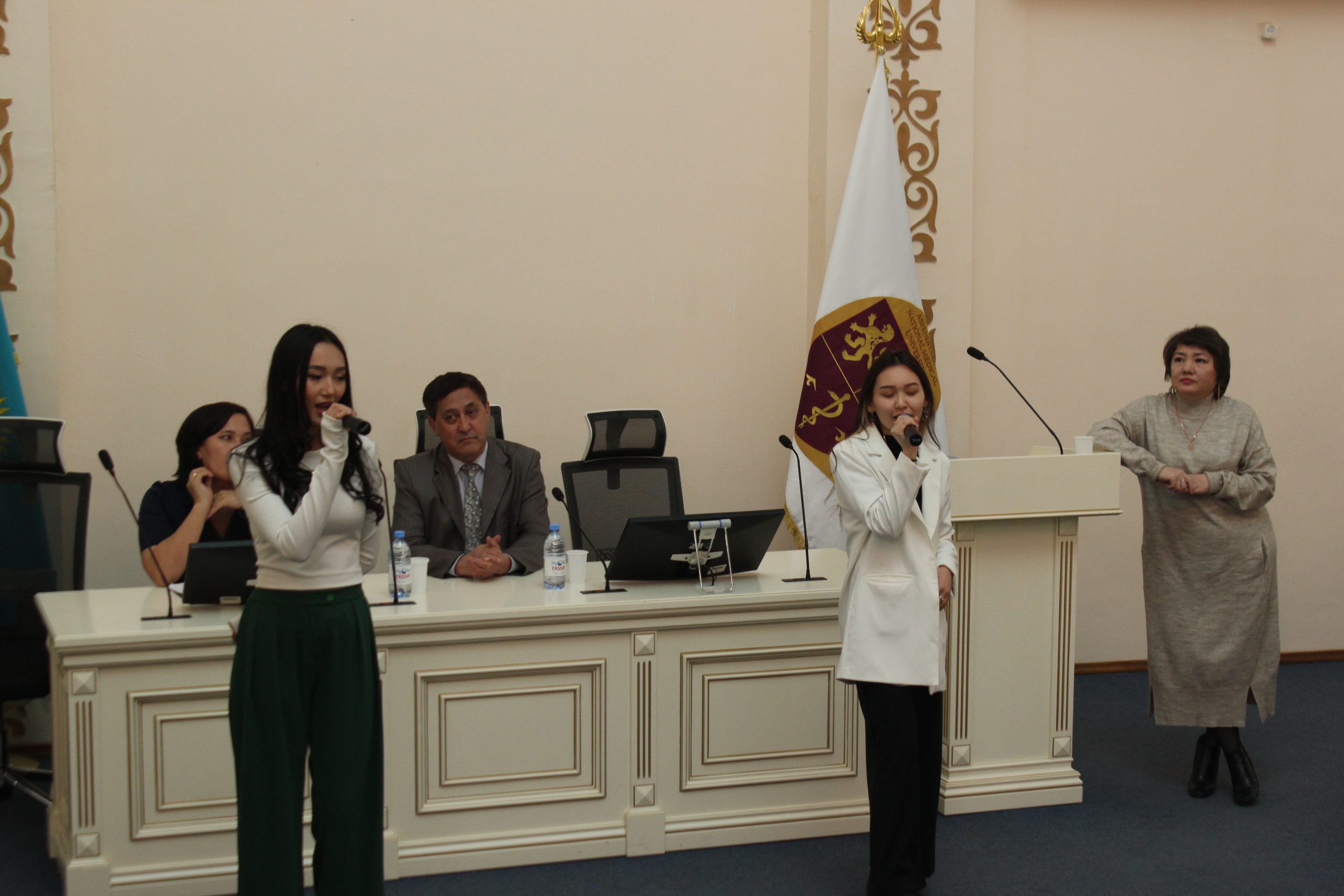 Приветсвенное слово было предоставлено Проректору по корпоративной работе проф.У.М.Датхаеву, затем выступила заведующая кафедрой языковых дисциплин Бактыбаева А.Т. Надо отметить, что данное мерприятие вызвало большой интерес у студентов. Первокурсники приняли активное участие в организации праздника, где они смогли показать свои таланты стихами, танцами и песнями. В знак благодарности студентам доцент кафедры языковых дисциплин Зайсанбаев Т.К. сыграл на добре и спел красивую песню на казахском языке.