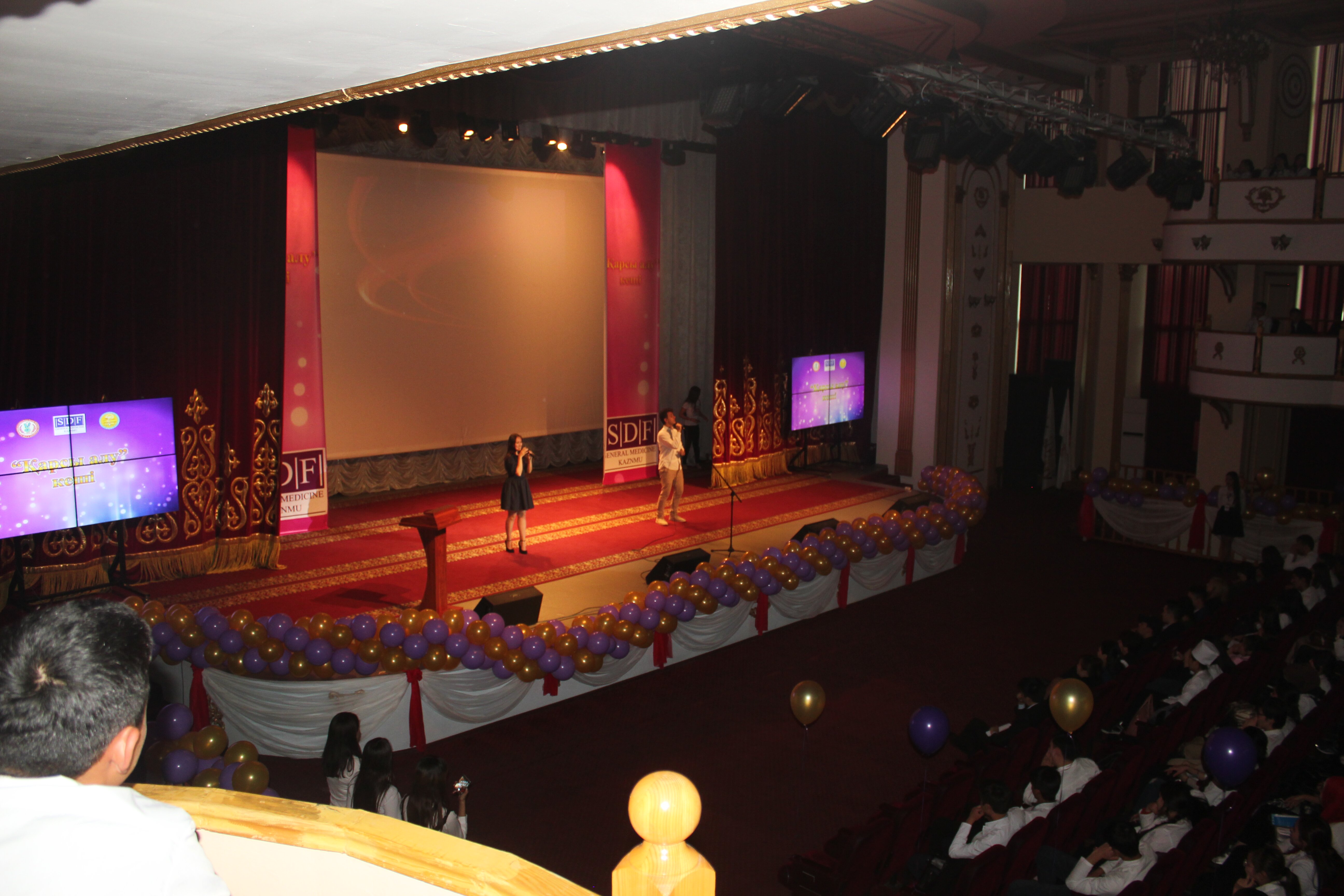 Казахском Национальном Медицинском университете имени С.Д. Асфендиярова в театре «Concordia» состоялся вечер для студентов первого курса. Ежегодное Мероприятие было организовано как обычно студентами второго курса и студенческим деканатом школы “Общей Медицины”. На этом вечере студенты нашего университета показали свои таланты, среди студентов 1 курса были проведены игры, а победителям были вручены подарки.