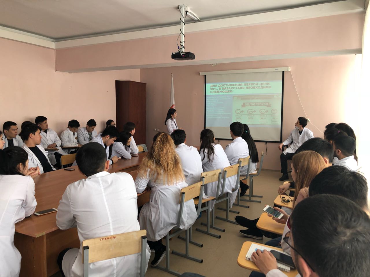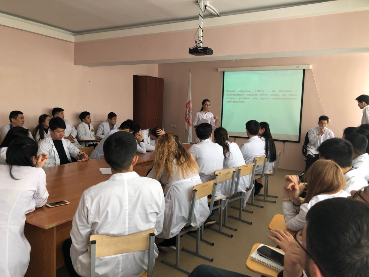 К подготовке данного мероприятия, студенты подошли с большой ответственностью. Спикерами подготовлены интересные доклады о статистике ВИЧ/ СПИД в РК (Анарбай Казына, 070-2 гр), теории происхождения ВИЧ (Самбет Санжар, 070-1 р), о путях передачи   ВИЧ инфекции среди подростков и молодежи (Маделханкызы З., 070-1 гр.).  Аралбаева Дарига рассказала о глобальных целях и задачах по профилактике ВИЧ-инфекции в РК к 2030 г. «90-90-90» (ЮНЭЙДС, 2014г.), направленных на прекращение эпидемии СПИДа.   Студентами снят видеоролик (Эпен Нурдаулет, Салманова Асем, 070-1 гр.) «Нет дискриминации ВИЧ-инфицированных», в котором они сами снимались в качестве актеров (Мырзамурадов Асад, Достай Аида, Надырова Сайера, Эргашбаева Захро,). Сахметовой Камиллой и Ким Светланой была подготовлена викторина, которая вызвала интерес у студентов. Обсуждались вопросы о путях передачи (может ли ВИЧ передаваться через инструменты в салонах красоты и тату-салонах и почему? Как заражаются ВИЧ подростки? и т.д.), мерах профилактики ВИЧ-инфекции. Для студентов были  подготовлены тесты по предоставленному материалу.