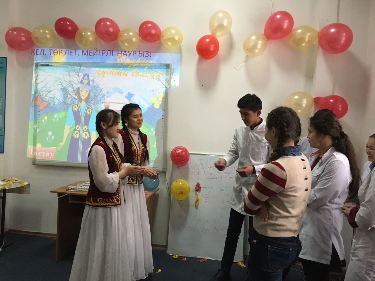 Студентами 14-021-02 группы III курса факультета «Общая медицина» под руководством ППС кафедры нормальной физиологии с курсом валеологии совместно с ППС кафедры пропедевтики детских болезней было организовано и проведено мероприятие, посвященное празднику Наурыз-2017 «Кел төрле, мейірлі Наурыз!» (14 марта 2017 г.) в аудитории №18 с приглашением проректора по воспитательной работе Р.Т.Джумашевой, начальника управления по воспитательной и социальной работе М.Т.Султановой, декана факультета «Общая медицина» Г.А.Шопаевой, заместителя декана 4 курса Ж.Ж.Курмангалиевой, заместителей декана 3 курса С.Х.Наккажиной и Г.Н.Бейсегуловой. Ответственные за мероприятие и студенты 14-021-02 группы III курса факультета «Общая медицина» обратили внимание студентов на укрепление мира и дружбы среди студентов, распространение идеи заботы о сохранения окружающей среды среди студентов, идейная и культурная консолидация молодёжи; воспитание культуры межнациональных отношений, создание атмосферы дружбы и доверия среди студентов; укрепление гражданского мира и межнационального согласия, обеспечение внутриполитической стабильности; сближение культур народов Казахстана, формирование общих культурных ценностей, общенационального сознания среди студентов, что и явилось целью проведенного вечера.