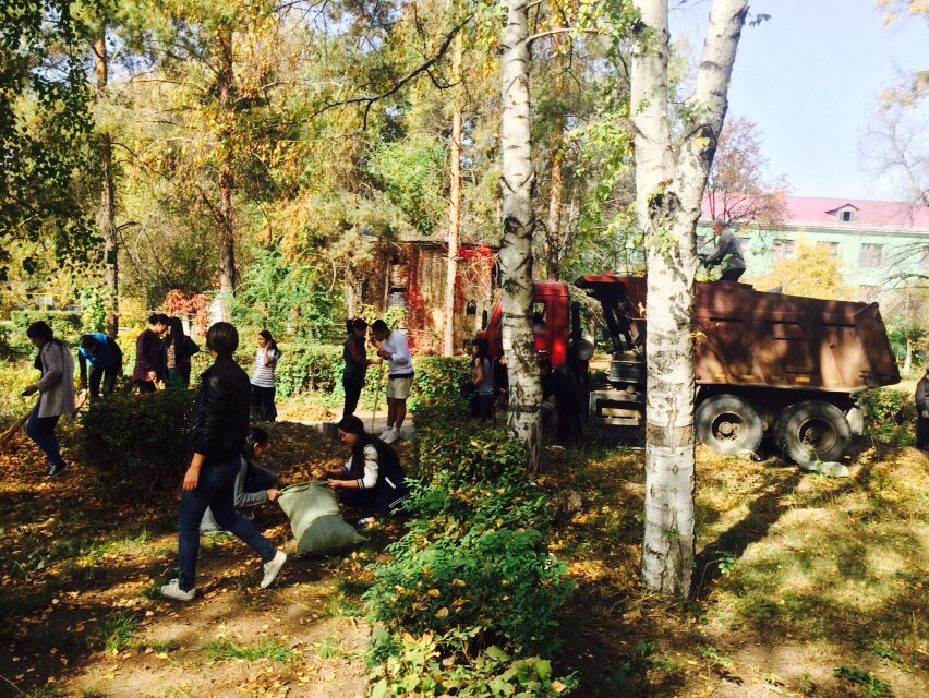 В мероприятии, стартовавшем во дворе железнодорожной больницы г. Алматы, расположенной по улице Акан Серы напротив универсама «Акжол», приняли участие сотрудники модуля нормальной физиологии и студенты III курса факультета «Общая медицина», относящиеся к центру интегрированного обучения (директор центра интегрированного обучения профессор Г.М.Есенжанова). Участники мероприятия были обеспечены необходимым инвентарем – перчатками и мешками для сбора мусора, вениками, лопатами.