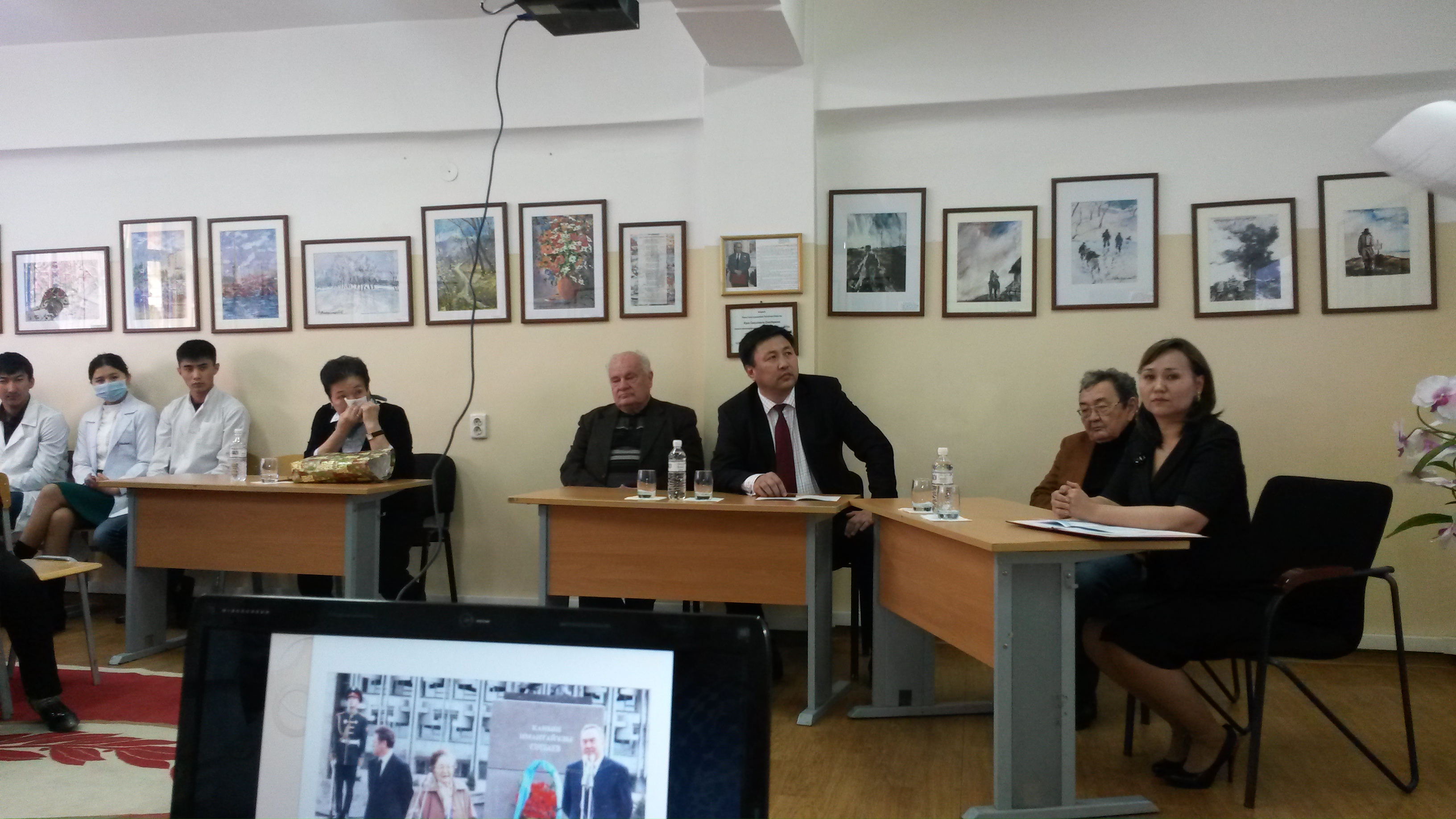 Зал заседания был оформленбогатым иллюстративным материалом и фото экспозициями из личного архива Х.К.Сатпаевой, демонстрировался созданный сотрудниками фильм«Жизненный путь профессора Х.К.Сатпаевой».