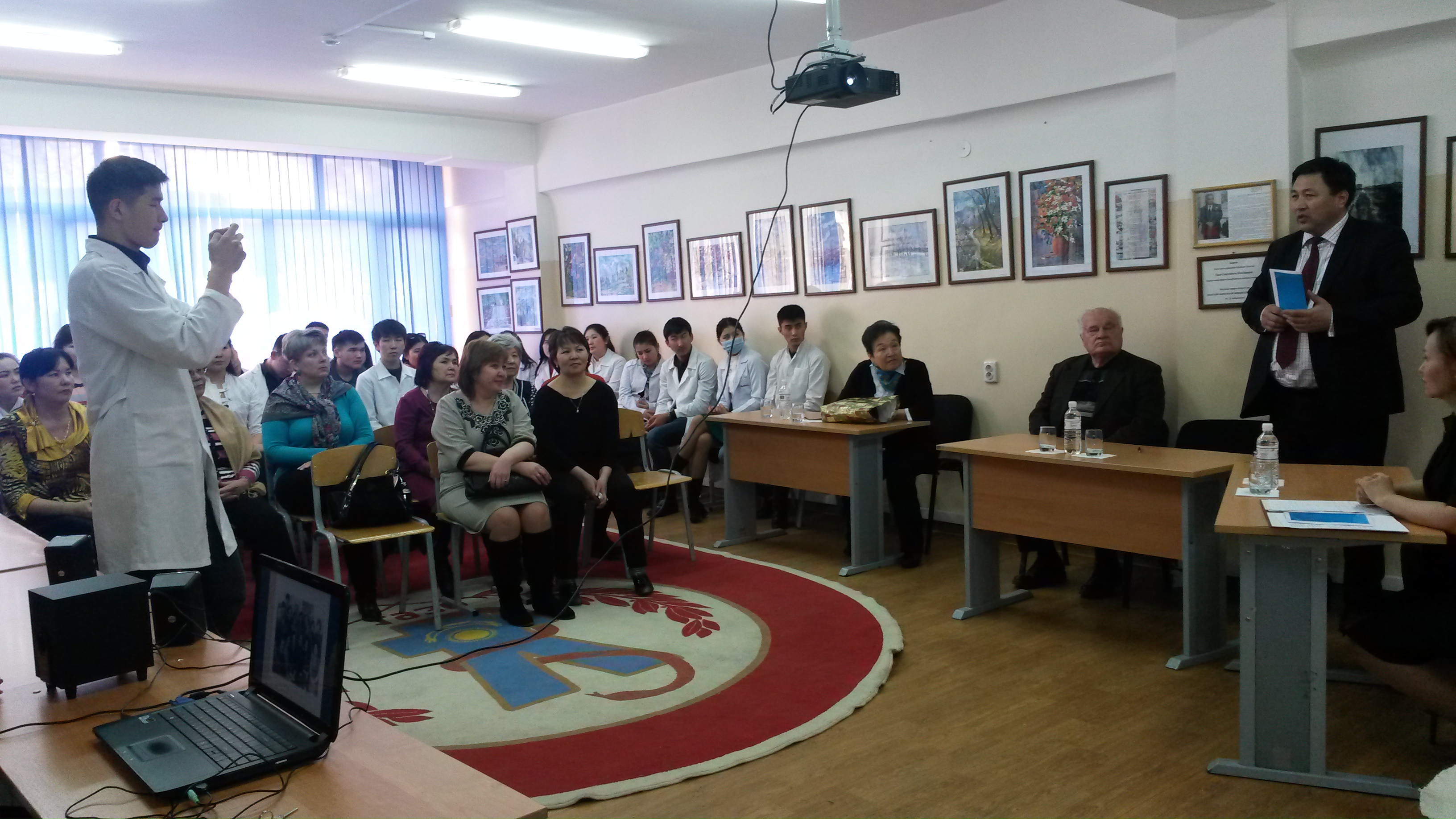 В работе круглого стола принялиучастиепрофессор Мустафина Ж.Г., декан факультета фармации профессор Датхаев У.М., сотрудники кафедры нормальной физиологии, патологической физиологии, модуля нормальной физиологии и студенты 2 курса факультета ОМ (тьюторские группы).