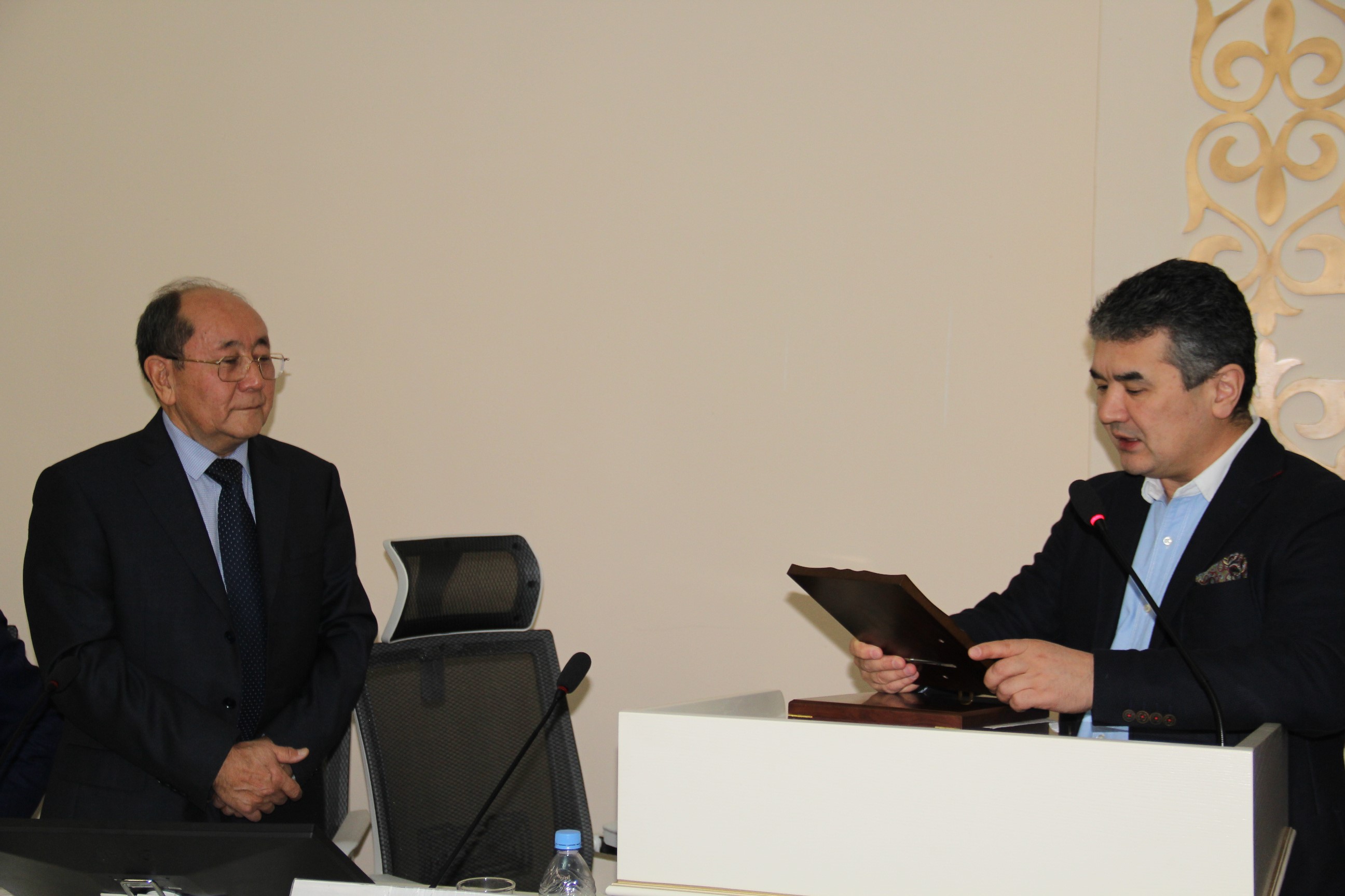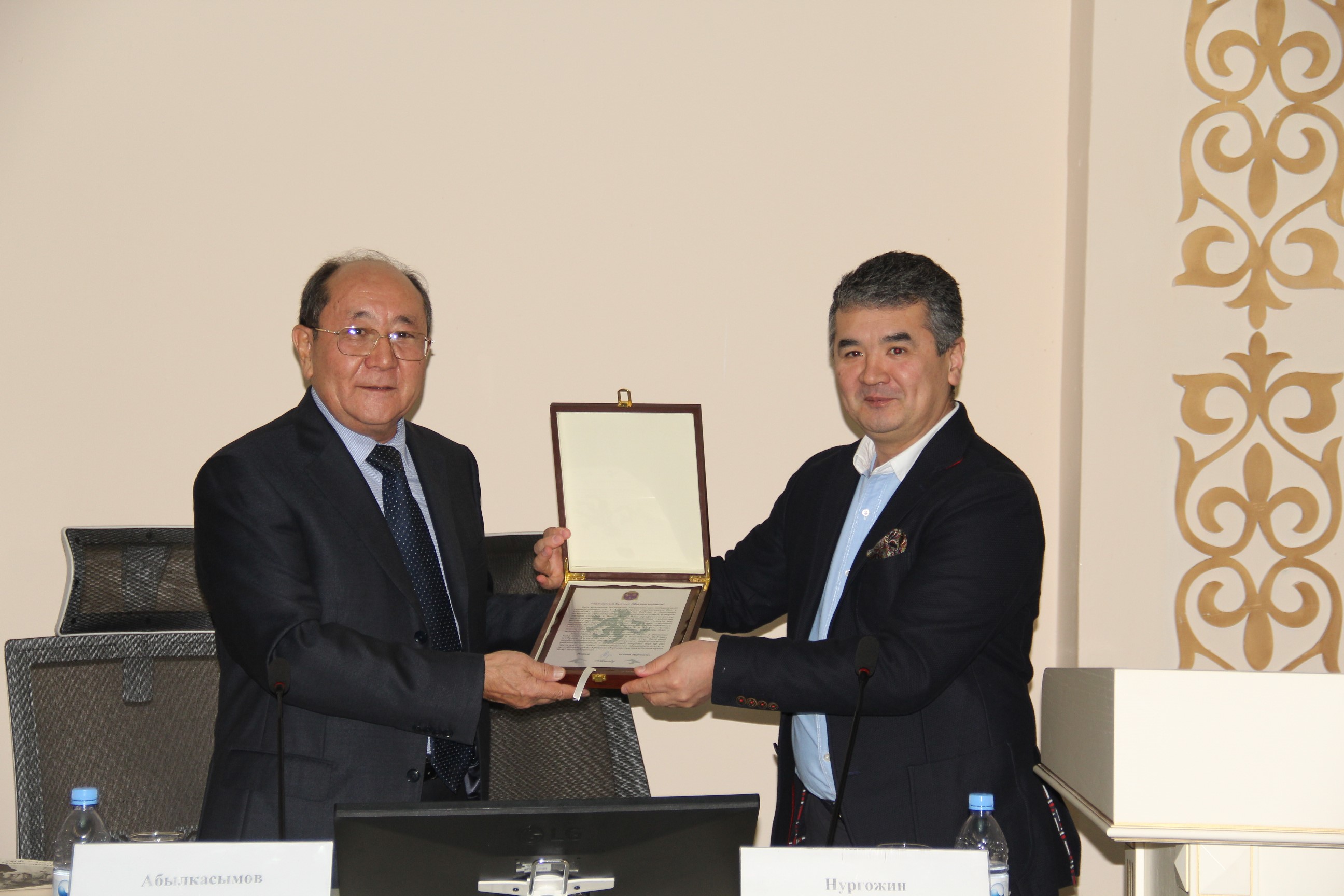 Кездесуге Университет ректоры Т. Нургожин, Қазақ-Ресей медицина университетінің ректоры Джайнакбаев Н.Т., Алматы қаласы бойынша әлеуметтік медициналық сақтандыру қоры филиалының директоры, м.ғ.д, профессор Абильдаев Т.Ш. және де бірге қызмет атқарған әріптестері қатысып, қонағымыздың өмір жолынан сыр шертіп, сыйлықтарын табыс етті.