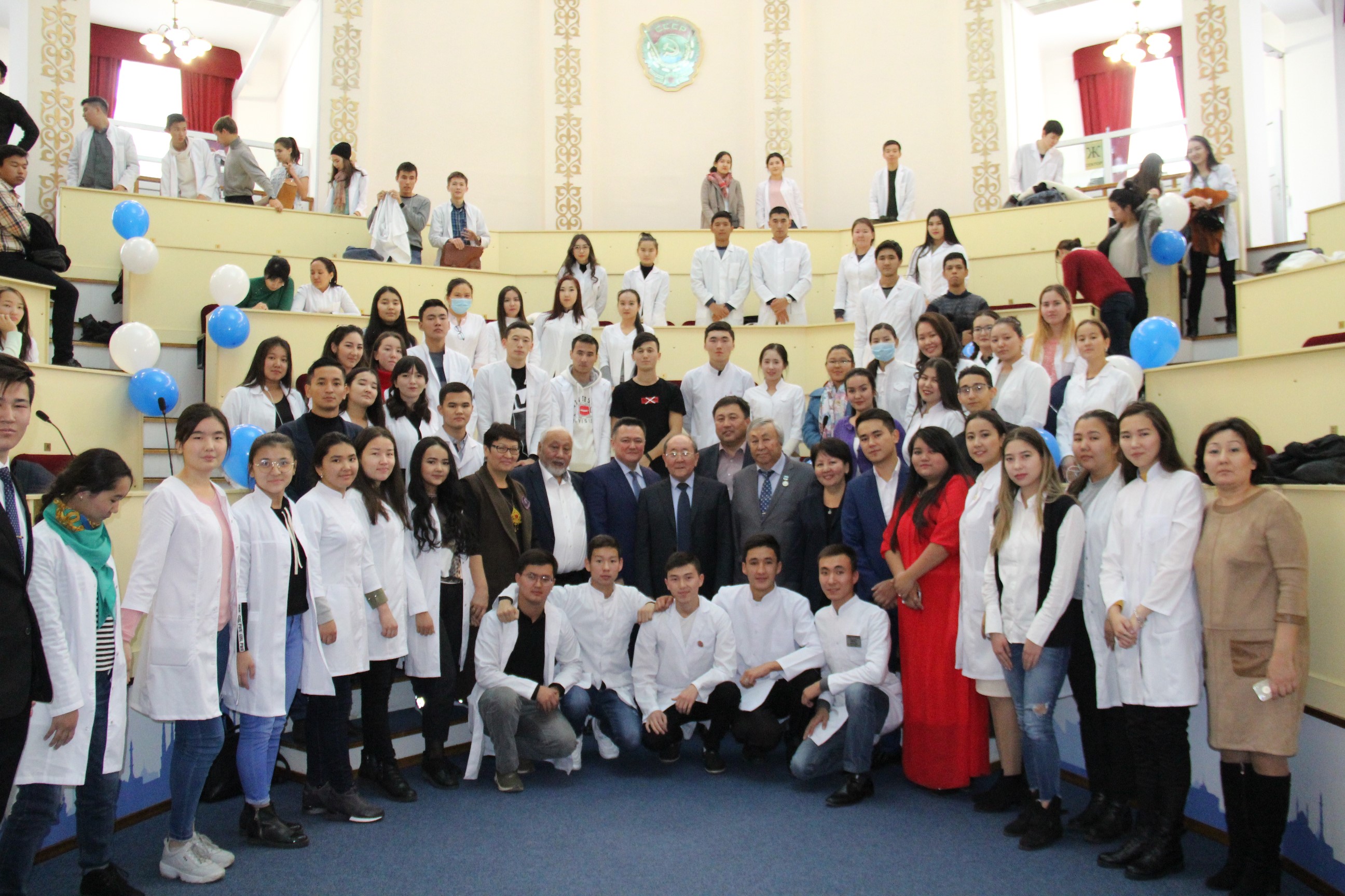 Білім алушылар келген қонаққа өздерін қызықтырған сұрақтарын қойып, еркін түрде сұхбаттасты. Жалпы медицина мектебінің өнерлі домбырашылар тобы күйлерін орындап, әннен шашу шашты.