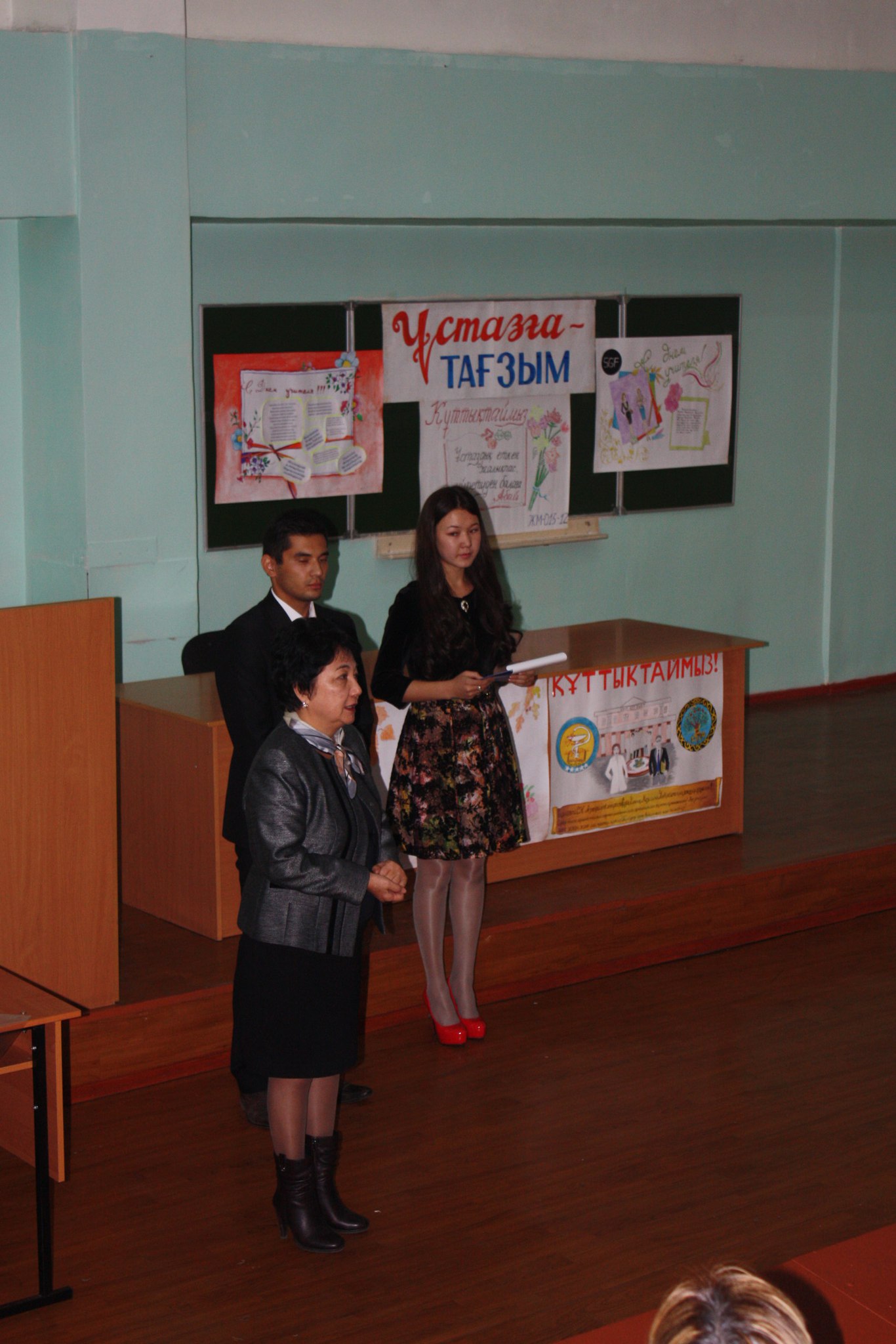 Каждый год в начале октября мы отмечаем День Учителя. Этот праздник направлен на то, чтобы ученики и студенты оказали уважение своим преподавателям, показали, насколько они им нужны, как много они для них значат. Сегодня, второго октября, прошло мероприятие посвященное ко дню учителей «Ұстазым-ұлағатым», организованное под руководством студенческого правительства. К мероприятию были приглашены представители 23 кафедр. Уважаемым учителям студенты факультета ОМ показали свои умения. В начале была устроена интеллектуально– развивающая игра «ХХІ ғасыр ұстазы». И даже в такой замечательный день, как «день учителя», наши преподаватели показали свою щедрость и решили, что в этой игре победила дружба. После, наши обладательницы золотого голоса спели песни Шамши в жанре попурри. И учителя и студенты были в восторге от данного вокала. Следом, наши красавицы танцовщицы порадовали нас народным танцем. Конечно, парни тоже внесли свой вклад: со своими веселыми шутками подняли всем настроение. В конце студенты спели хор «Бір үйдің баласындай» в исполнении группы «Сарын». Учителям были подарены годовые календари. Так, студенческое правительство, показали, что ценят и уважают труд педагогов, которые вложили в них частичку себя. И конечно же, хотим поблагодарить всех учителей и студентов, которые уделили время и были зрителями мероприятия. И хотим сказать, что сегодняшнее мероприятие только начало нашей большой и долгой дороги !