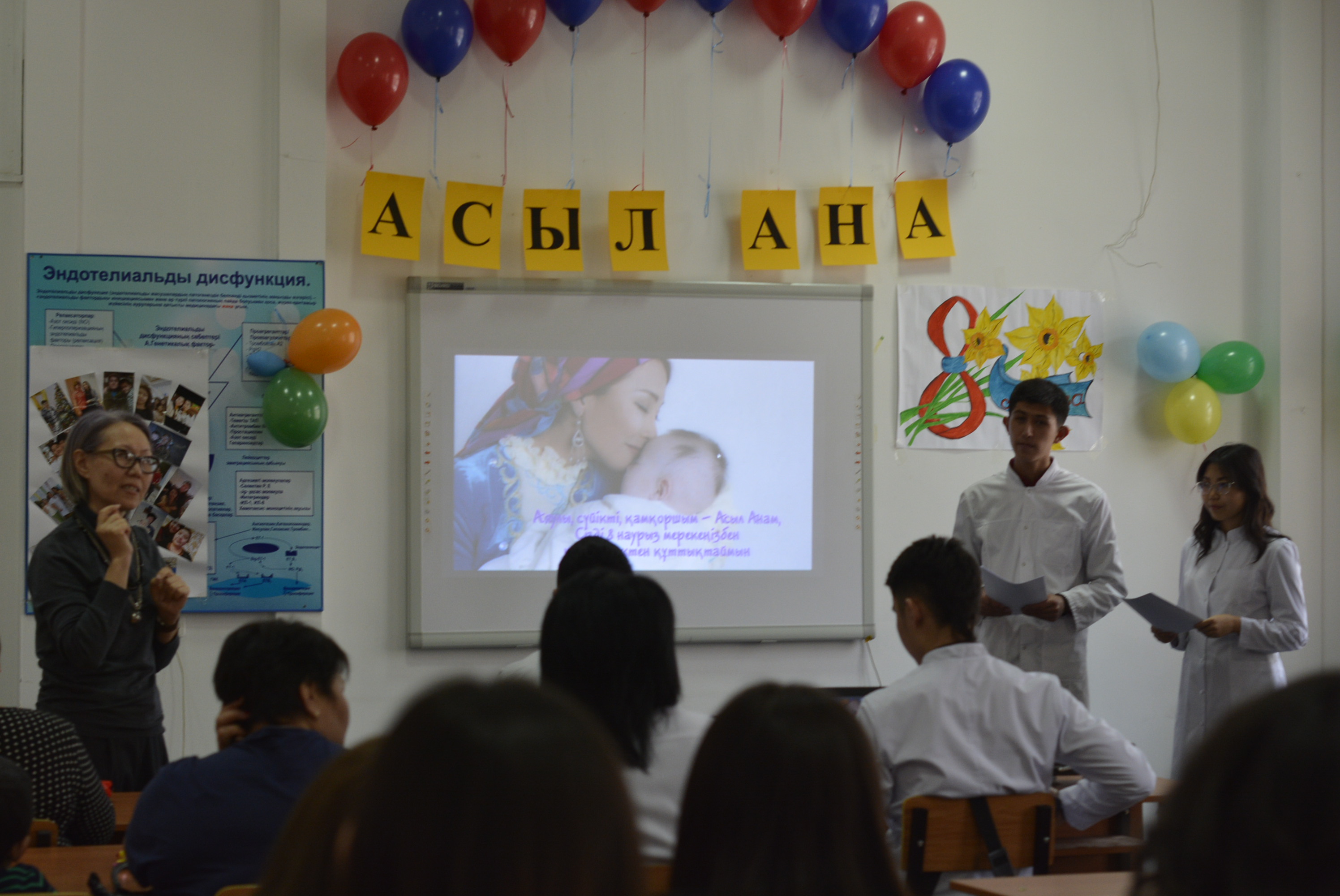 Гистология кафедрасында Жалпы медицина факультетінің 2 курсы ЖМ15-16-01қ, ЖМ15-16-02қ, ЖМ15-19-01қ, ЖМ15-19-02қ топтар студенттерінің ұйымдастыруымен 2017 жылдың 7 наурыз күні сағат 11.00 де «Асыл ана» атты кеш ұйымдастырылды. Кеште дүниедегі ең үлкен құрметке лайық жандарымыз Асыл аналарымызға арнап студенттер тарапынан ән айтып, өлең оқып, би билеп, күй ойнап және көрермендер көңілін көтеру мақсатында ойын да ұйымдастырылды. Кеш барысында қойған қойылымдардан алған әсерден көрермендердің сезімдері де әртүрлі болды. Кеш барысында қатысқан оқытушылар кештің жоғары деңгейде өткізілгендігін айтып жатты. Ұйымдастырушылар тарапынан алға қойылған мақсат, студенттерге аз да болса аналарымызды құрметтеп сыйлауға ой тастау болатын.