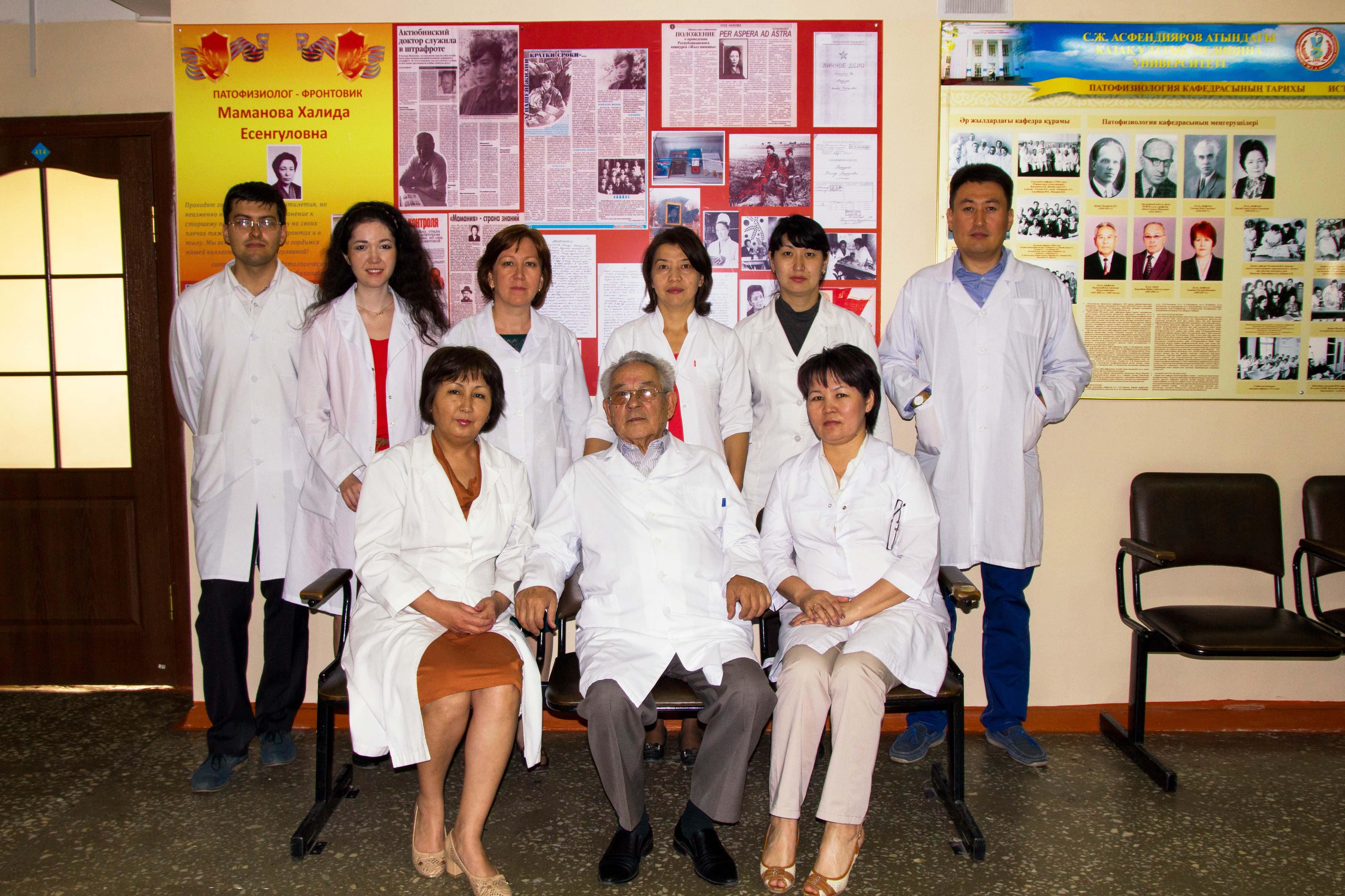 По этому случаю был подготовлен стенд памяти патофизиолога-фронтовика, обладательницы Ордена «Красная звезда», Медали за оборону Сталинграда, Медали за победу над Германией, Мамановой Халиды Есенгуловны.