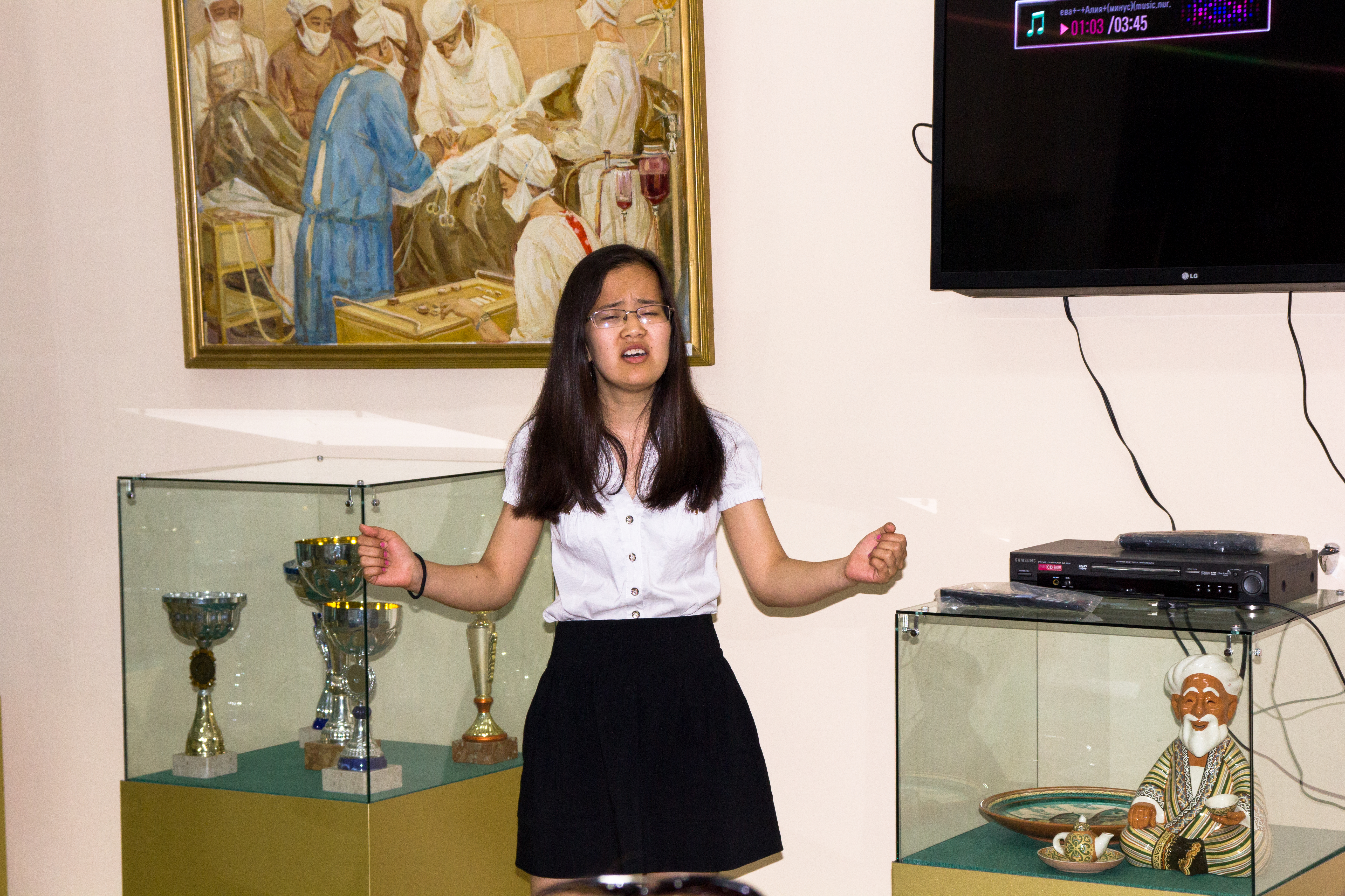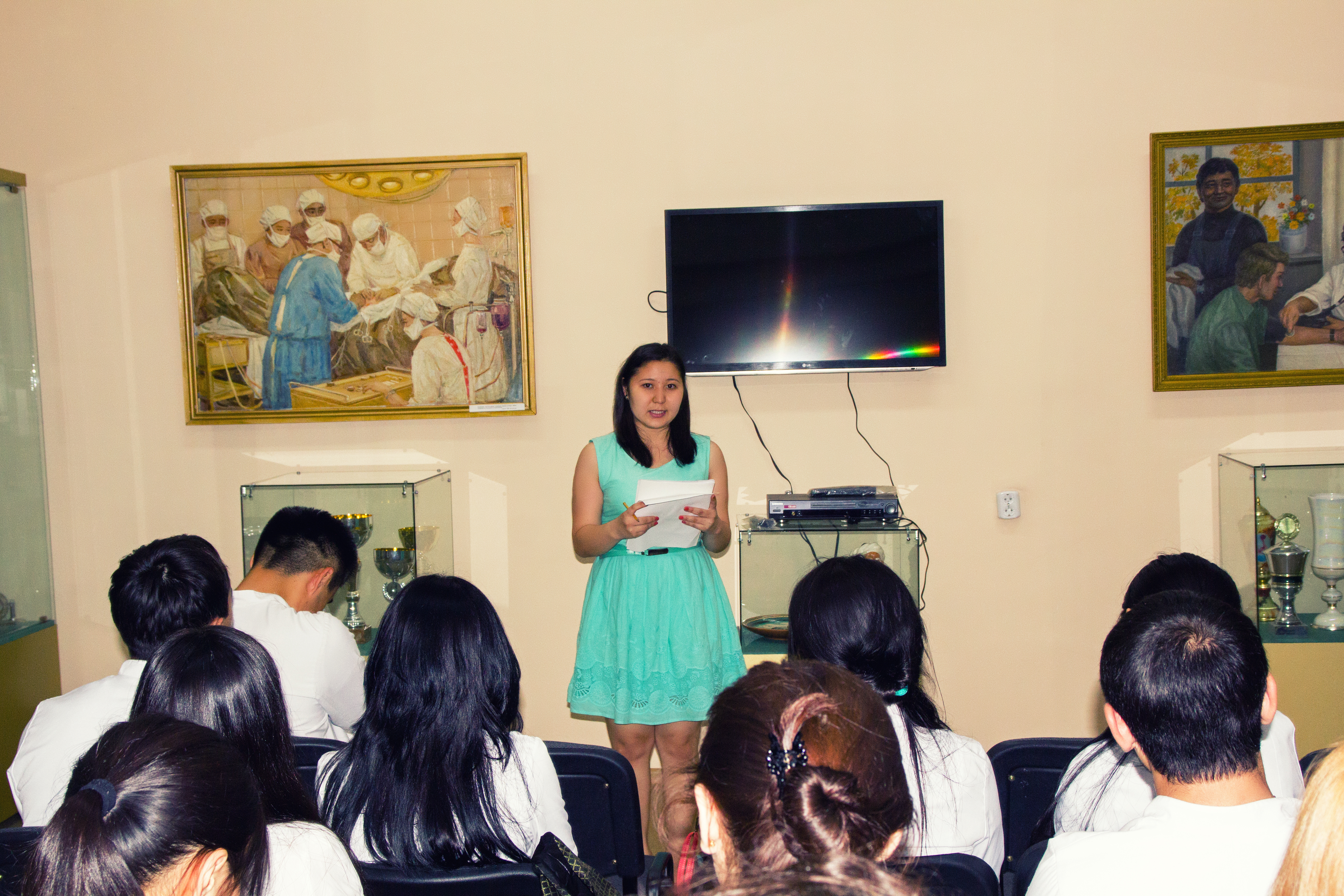 12 мая в музее КазНМУим. С.Д. Асфендияровабыл организован просмотр фильма «Письма с фронта».Затемстуденты исполнили песни военных лет на казахском и русском языках. Студентка ОМ 13-45 группы Дана Рысымбет подготовила содержательный доклад о женщине капитане, докторе медицинских наук,профессоре, одной из первыхженщин казашек патофизиологовМамановой Х.Е.