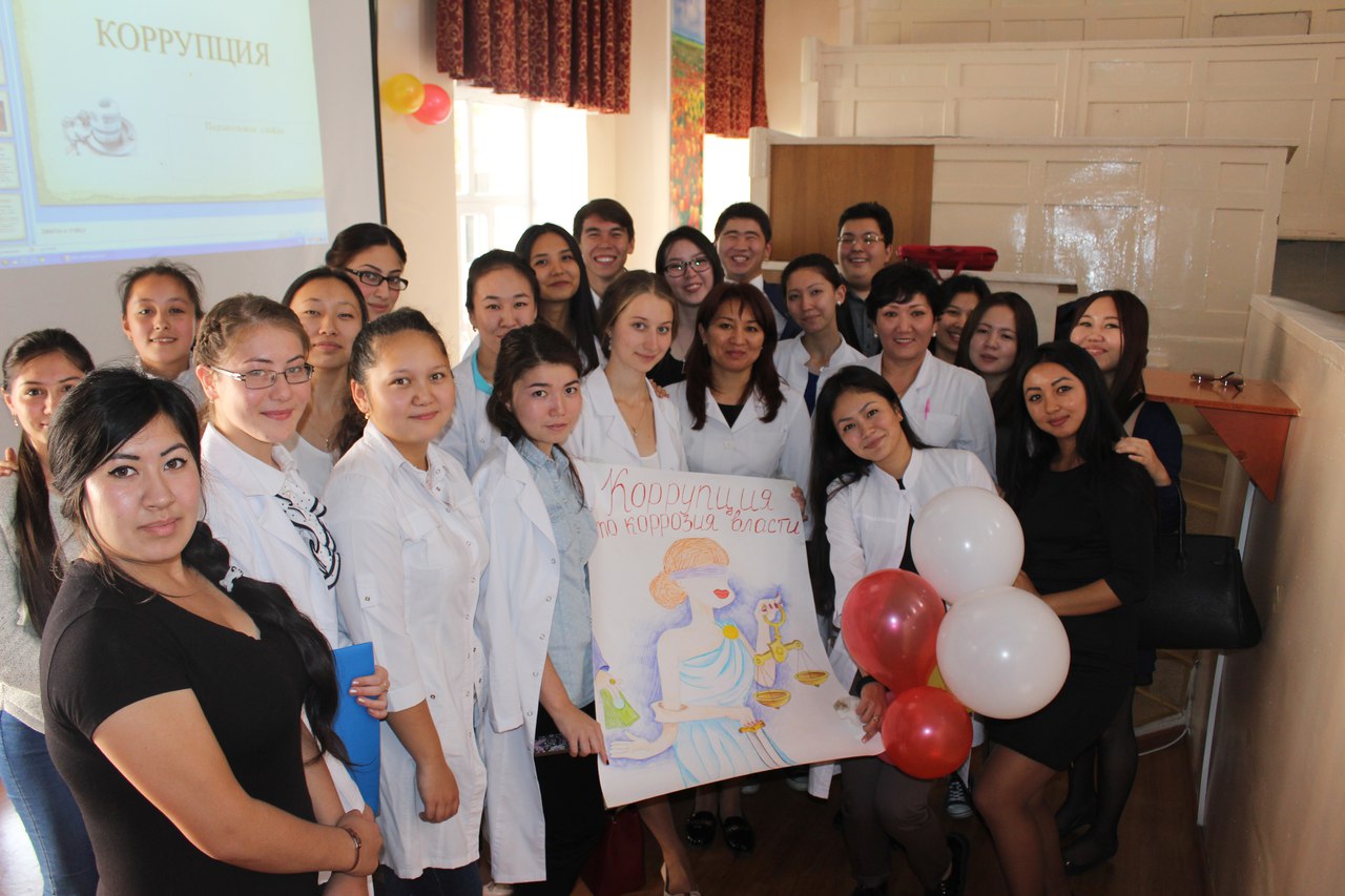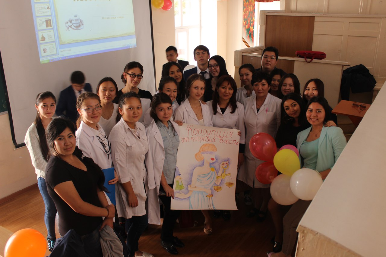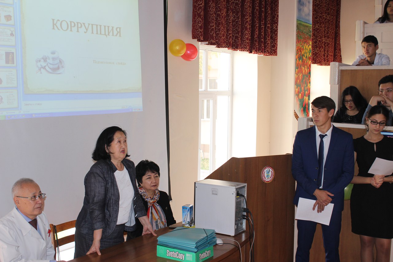 Особенно понравилась всем сценка «Коррупция в медицине» с участием студентовҚұлдыбай Әсем, Нурсеит Нуркен, Чәкен Ержан, Оразғалиева Назерке, Әбдікерім Балтөре, Ескендір Дина. Завершилось мероприятие викториной «Эрудит.Коррупция». Участникам были вручены грамоты, гости выразили благодарность организатораммероприятия.