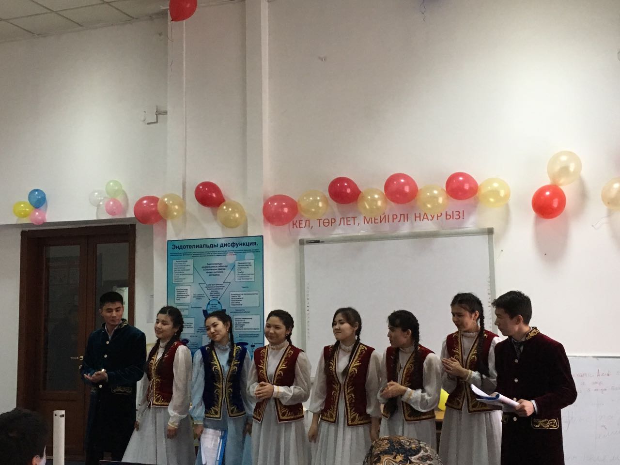 Студентами 14-021-02 группы III курса факультета «Общая медицина» под руководством ППС кафедры нормальной физиологии с курсом валеологии совместно с ППС кафедры пропедевтики детских болезней было организовано и проведено мероприятие, посвященное празднику Наурыз-2017 «Кел төрле, мейірлі Наурыз!» (14 марта 2017 г.) в аудитории №18 с приглашением проректора по воспитательной работе Р.Т.Джумашевой, начальника управления по воспитательной и социальной работе М.Т.Султановой, декана факультета «Общая медицина» Г.А.Шопаевой, заместителя декана 4 курса Ж.Ж.Курмангалиевой, заместителей декана 3 курса С.Х.Наккажиной и Г.Н.Бейсегуловой. Ответственные за мероприятие и студенты 14-021-02 группы III курса факультета «Общая медицина» обратили внимание студентов на укрепление мира и дружбы среди студентов, распространение идеи заботы о сохранения окружающей среды среди студентов, идейная и культурная консолидация молодёжи; воспитание культуры межнациональных отношений, создание атмосферы дружбы и доверия среди студентов; укрепление гражданского мира и межнационального согласия, обеспечение внутриполитической стабильности; сближение культур народов Казахстана, формирование общих культурных ценностей, общенационального сознания среди студентов, что и явилось целью проведенного вечера.