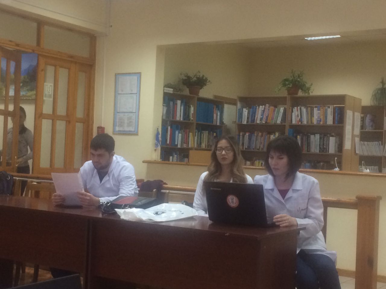 Студенты 5 курса   факультета ОМ (гр.12045-1):Абдул Хак  Леванхел,  Жанабаева Асемгуль,  Исупова Людмила, Касимов Расул, Талипова Екатерина, Тортбаева  Жазира, Шнарбаев Чингиз рассказали своим сверстникам, что правильная осанка – это не только красиво, но и является показателем, как физического, так и психологического здоровья. Нарушение осанки – это большая группа приобретенных, а в некоторых случаях и врожденных состояний, которые проявляются в различных искривлениях позвоночника. Вопрос о патологической осанке является особо актуальным сегодня, ведь современный образ жизни, длительное времяпрепровождение за мониторами компьютеров, отсутствие гигиенических стандартов мебели в учебных заведениях и в офисах приводят к учащению нарушений осанки не только у детей, но и у взрослых.  Будущие врачи  сообщили о  клинических проявлениях сколиозов, дорсопатий, мерах профилактики, познакомили со статистическими данными. Были использованы видеоматериалы.