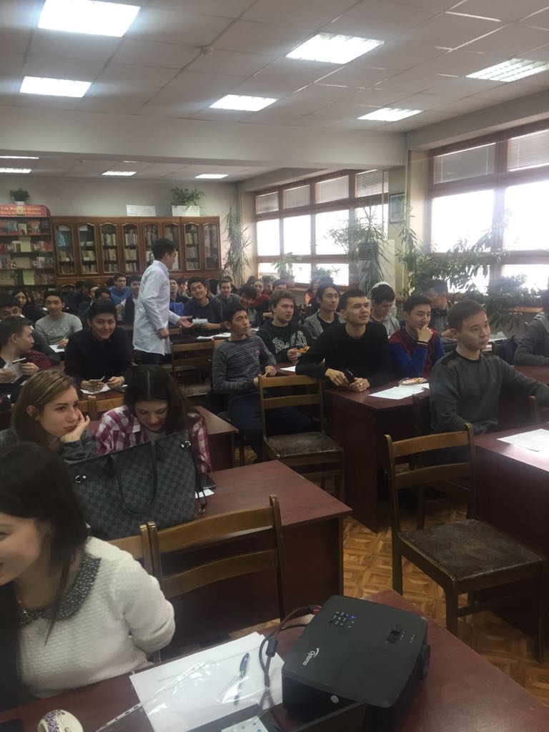 Мероприятие было проведено студентами 5 курса факультета общей медицины  под руководством профессора кафедры д.м.н. Туруспековой С.Т.  для своих сверстников – студентов Алматинского Университета Энергетики и Связи.