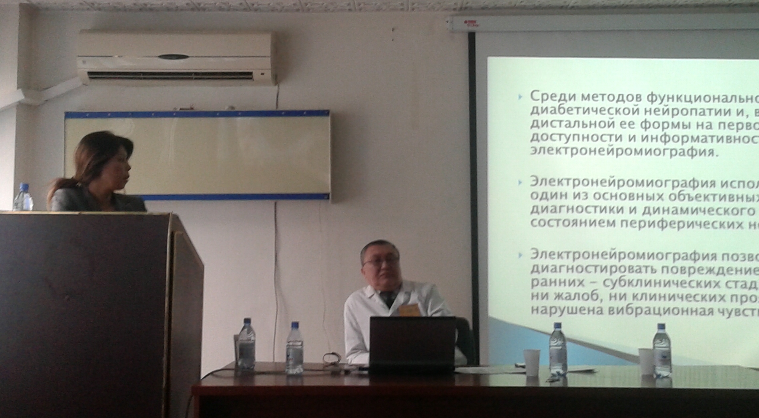 03 марта 2015 года кафедра нервных болезней (зав. кафедрой профессор Е.С. Нургужаев) КазНМУ им. С.Д.Асфендиярова совместно с 1 ГКБ провела городскую научно-практическую конференцию «Современные аспекты соматоневрологии».