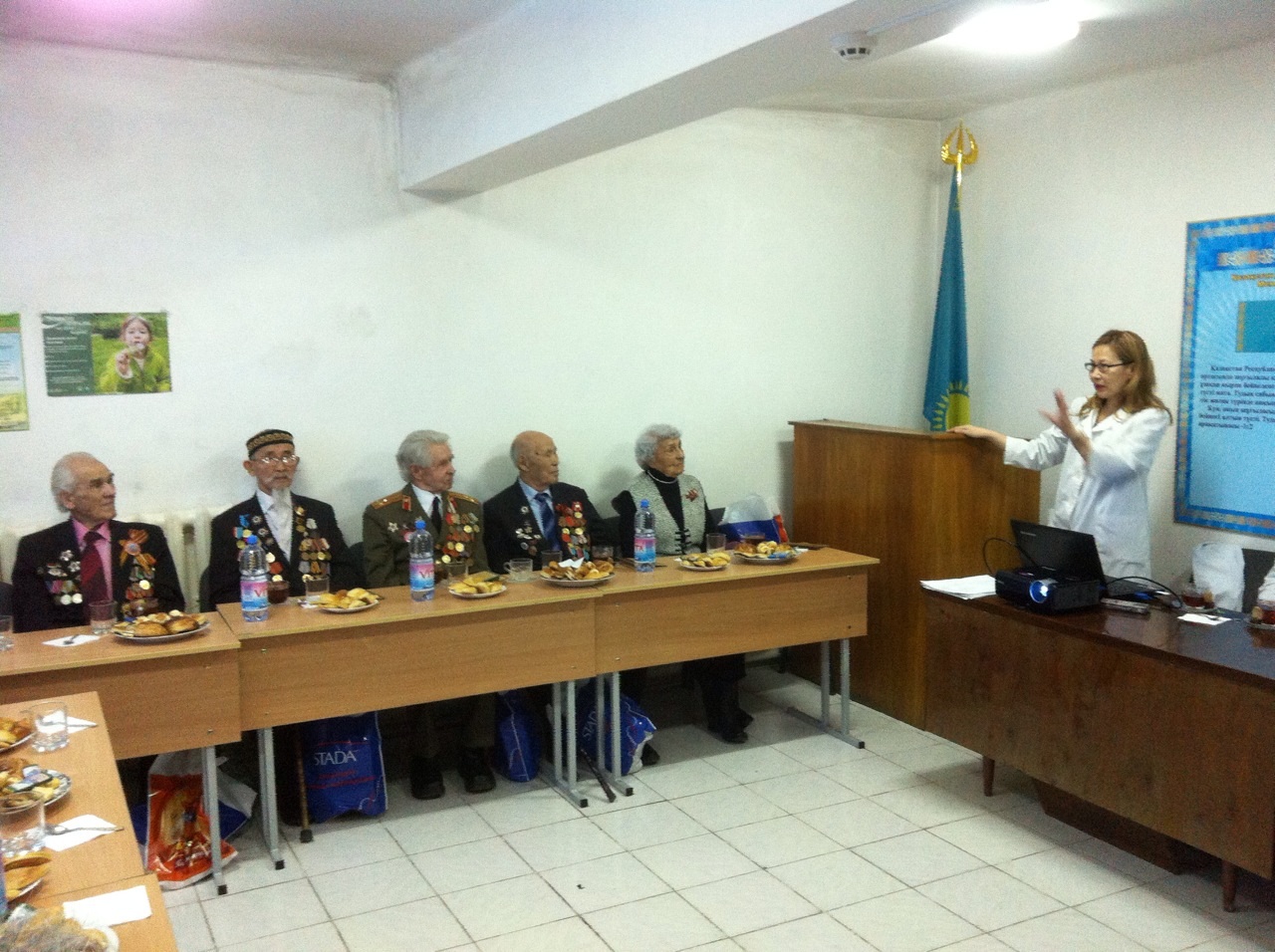 23 февраля был организован круглый стол, посвященный дню Защитника Отечества. Со-организатором данного мероприятия явились Городской Совет Ветеранов ВС РК и ГКП на ПХВ «Поликлиника ВОВ». Сотрудниками кафедры СНМП и председателем Городского Совета Ветеранов ВС РК Шампиевым М.Д. были прочитаны доклады, касающиеся актуальных проблем геронтологии и ветеранов ВОВ. Ветеранам и инвалидам ВОВ были вручены пакеты с лекарственными препаратами и продовольственными товарами.
