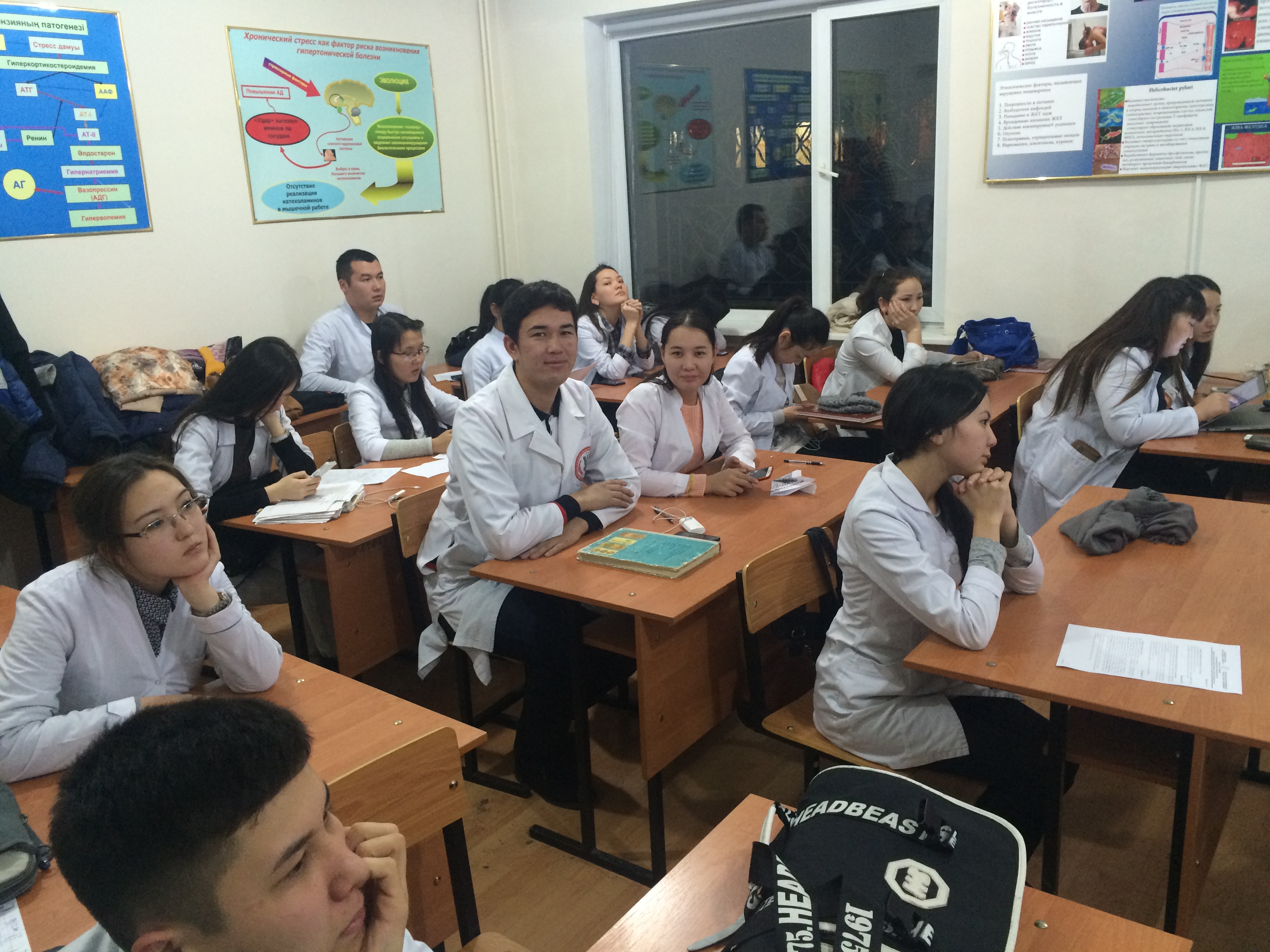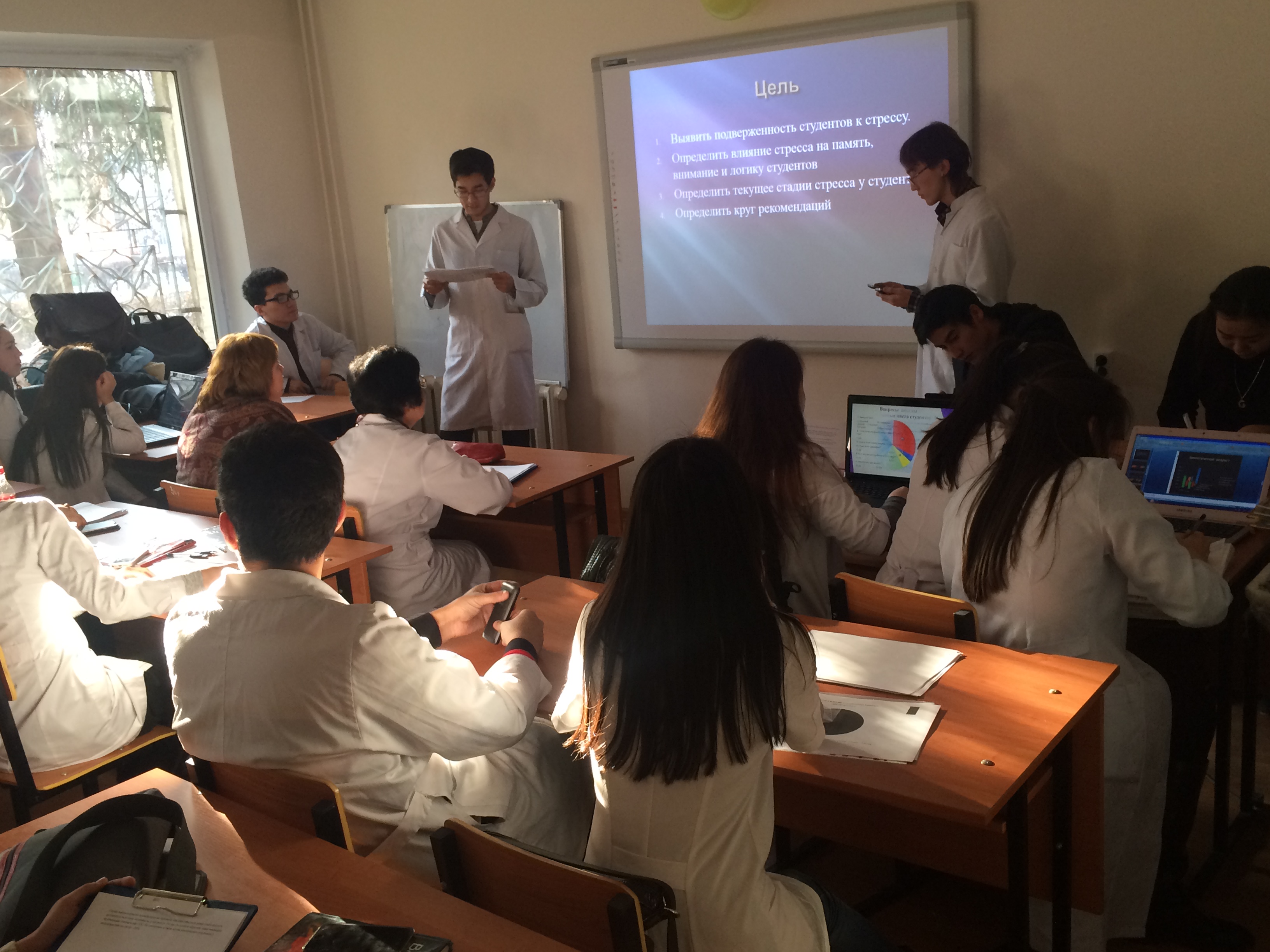 28 ноября 2015 года студентами 13-024-02 и 13-030-02 группы III курса факультета «Общая медицина» совместно с ППС модуля нормальной физиологии был организован и проведен I тур НСК модуля нормальной физиологии в аудитории №40 с приглашением проректора по учебно-воспитательной работе К.А.Тулебаева, начальника управления по социально-воспитательной работе М.Т.Султановой, директора департамента «Базовых дисциплин» К.К.Мустафиной, директора центра интегрированного обучения Г.М.Есенжановой, начальника ОП и КУП (учебная часть) К.Е.Куангалиевой, декана факультета «Общая медицина» Р.Т.Джумашевой, сотрудников деканата факультета «Общая медицина»: заместителя декана 3 курса и по воспитательной работе Ж.Ж.Курмангалиевой.