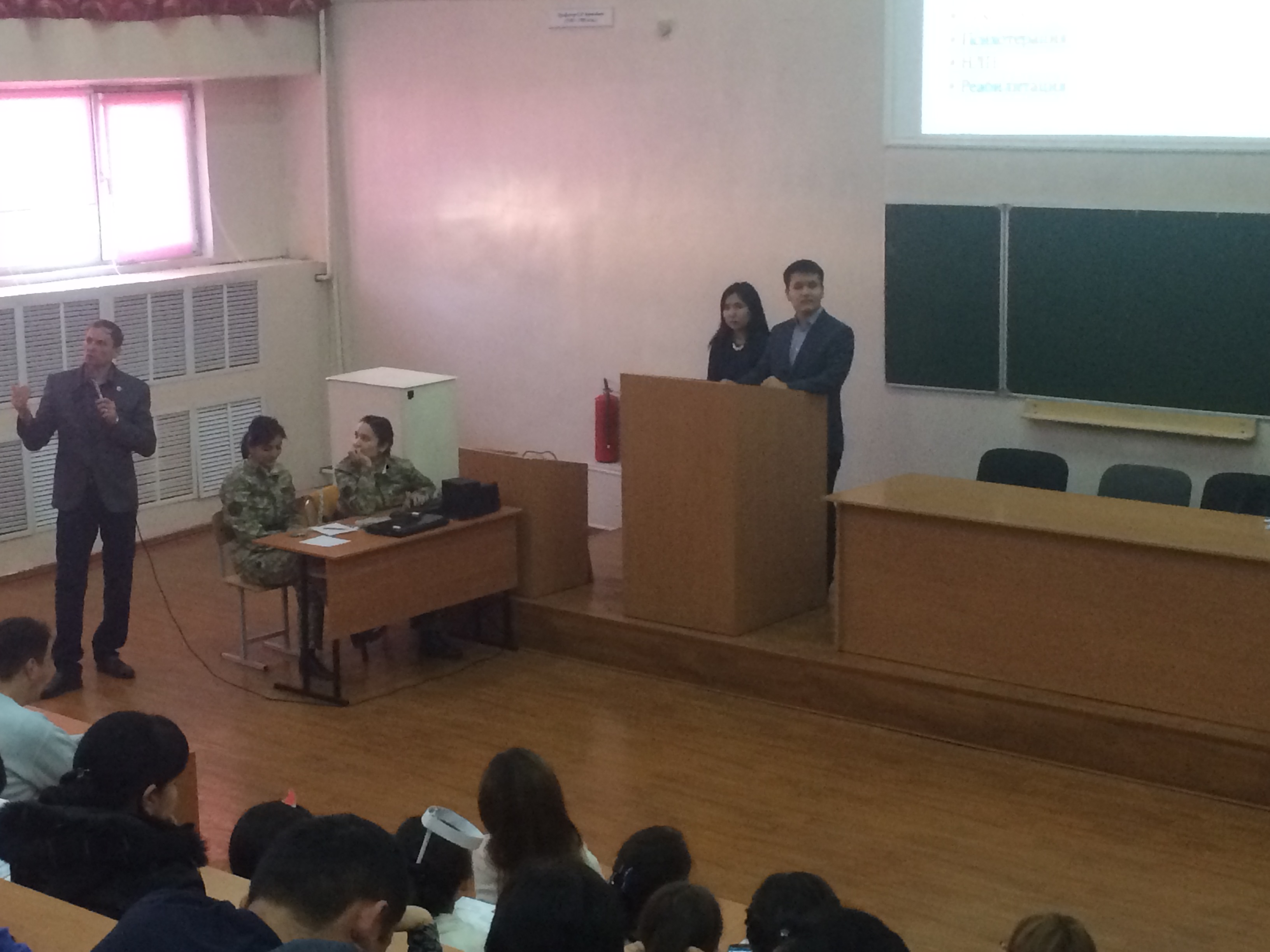 В начале мероприятия с приветственным словом выступила декан факультета «Общей медицины» Джумашева Р.Т. Далее слово предоставили врачу-наркологу Алиеву Р.Н., который прочитал лекцию на тему: «Наркомания. Новые синтетические наркотики». В лекции были освещены вопросы пагубного действия на организм общеизвестных наркотиков, а также новых синтетических наркотических веществ – спайсов. О способах распространения этих веществ, а также том как торговцы наркотиками, могут обманным путем привлечь молодых людей к употреблению наркотических веществ и как следствие к формированию дальнейшей наркозависимости.