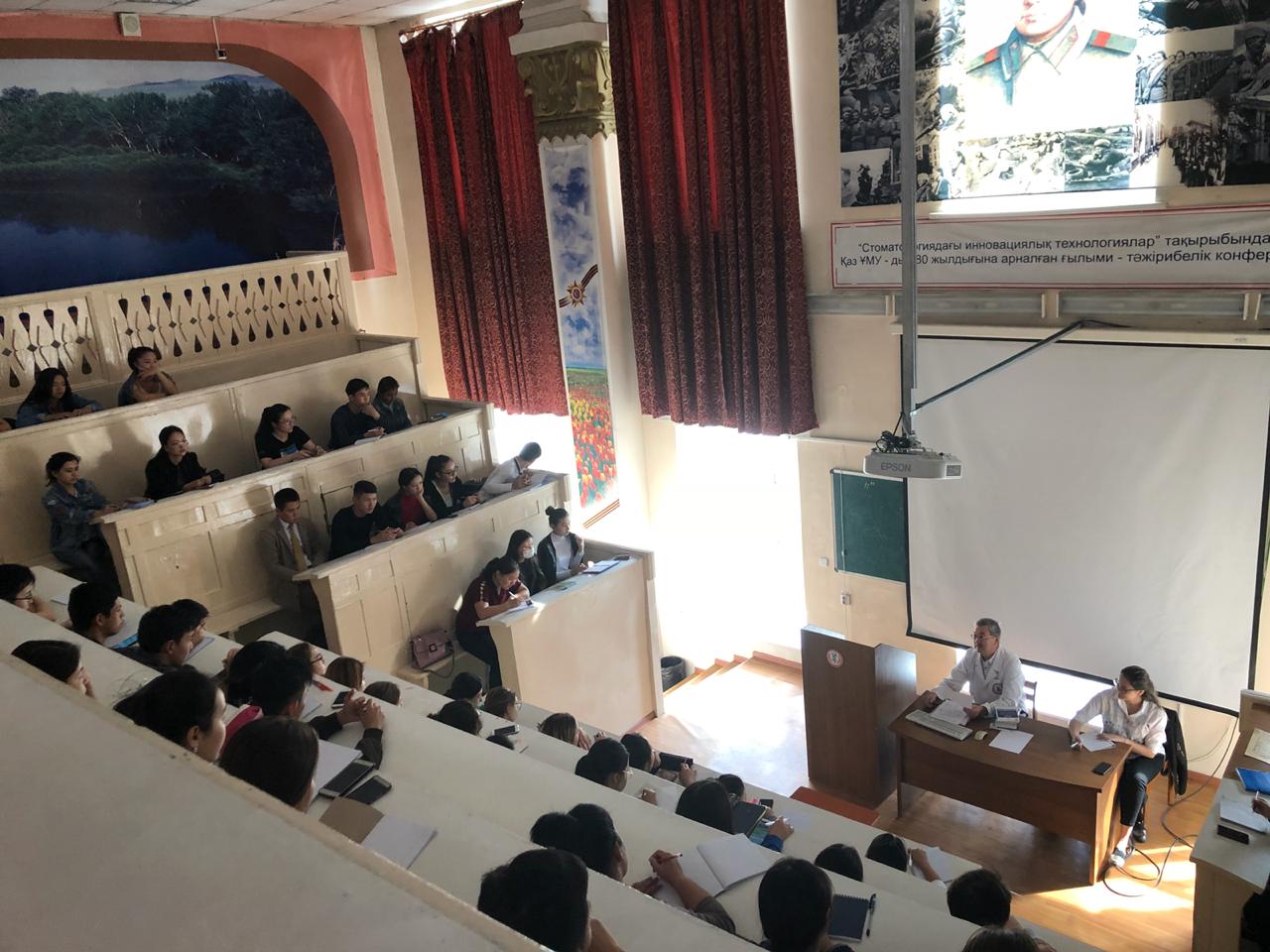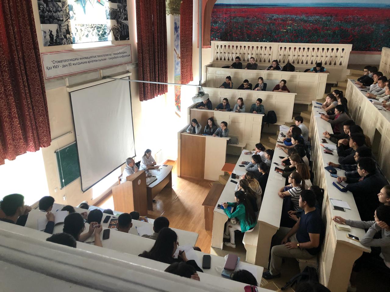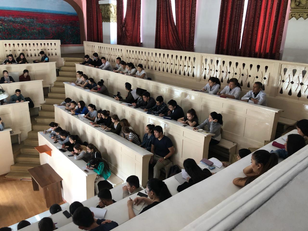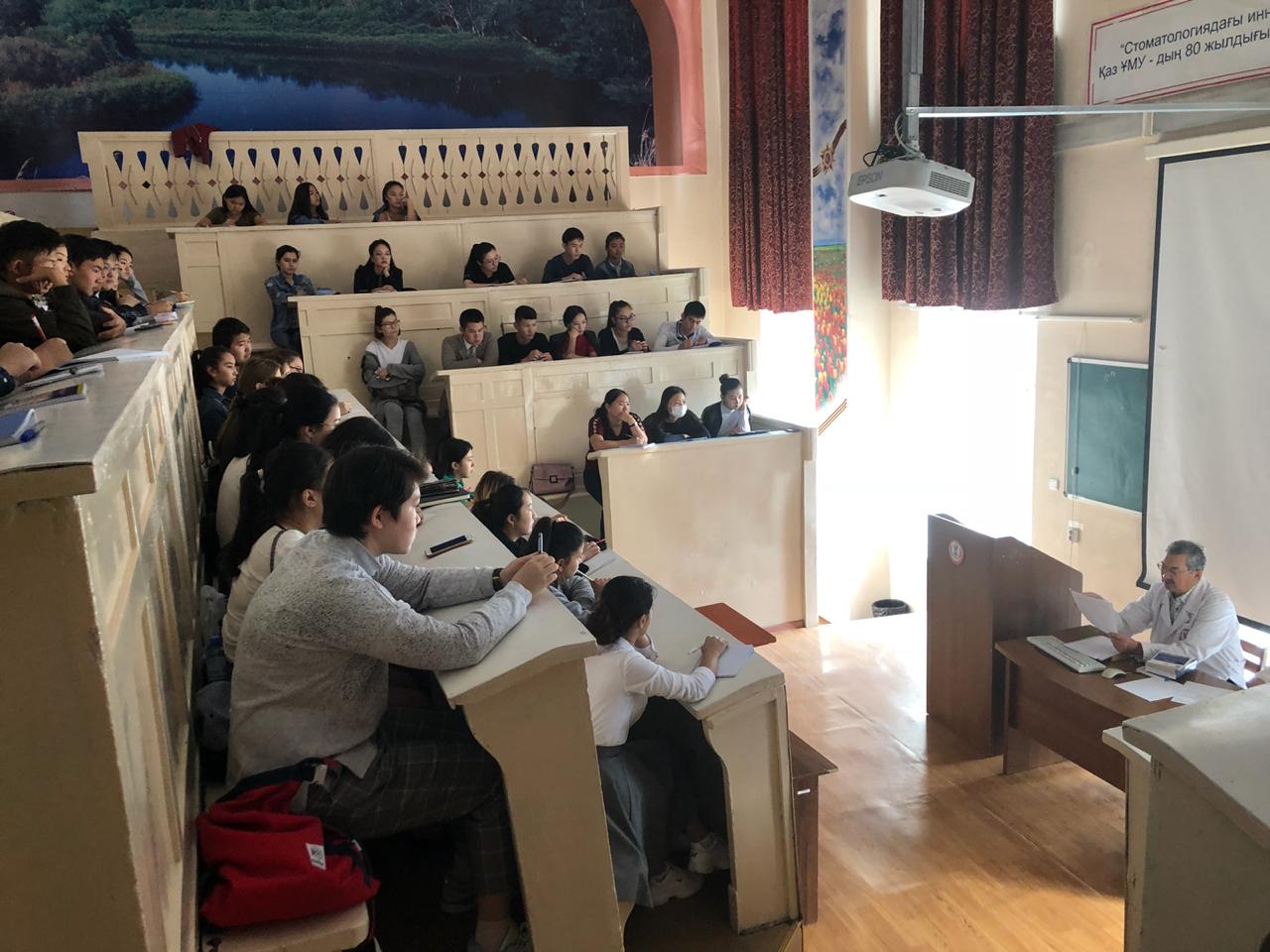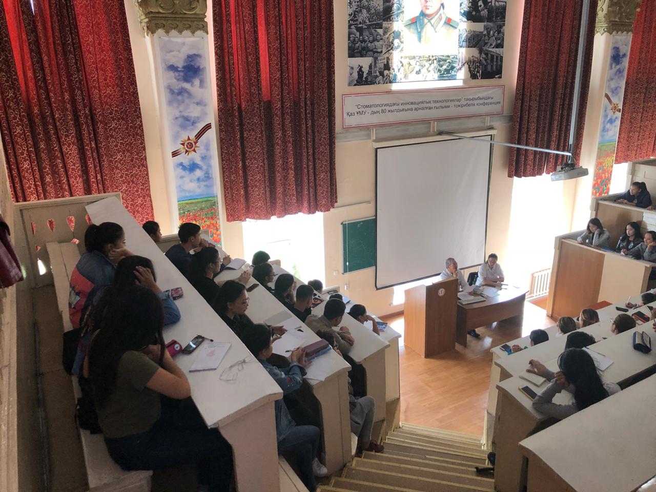 22 сентября 2018 года на кафедре нормальной анатомии ( зав. доцент Ахмад Н.С). прошло первое заседание  НСК «Анатом». Руководитель НИРС кафедры : профессор Жаныбеков Д.Е.  Присутствовали более 90 студентов младших курсов, преимущественно студенты ОМФ, а также молодые ученые кафедры.  На  заседаний  НСК были заслушаны следующие вопросы: 1-организационный  вопрос. 2- утверждение плана НИРС на  учебный год. 3-разное. По первому вопросу: председателем НСК «Анатом» выбран студентка 3-го курса ОМФ Қайшыбай  Ақеркем. Секретарем  студентка 2-го курса ОМФ Бақытова Алия. По второму вопросу: заслушан и утвержден  план НИРС и молодых ученых на 2018-2019 уч.гг.  По  третьму  вопросу:  студентам представлены темы научно-исследовательских работ. К информации прилагаются фотодокументы.
