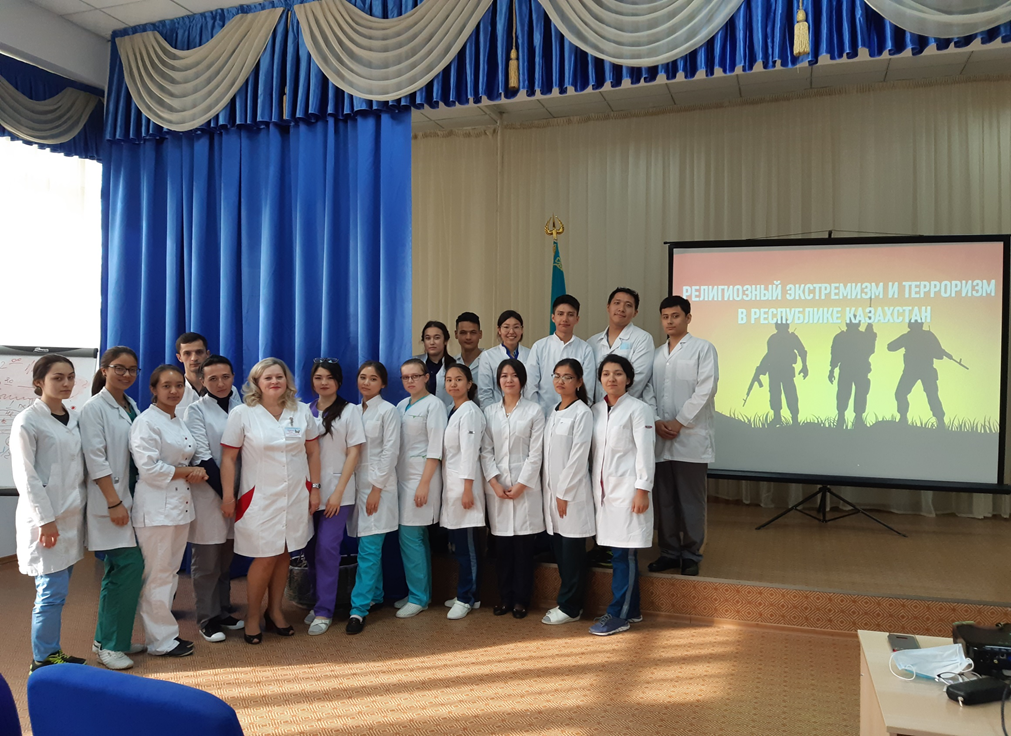 21 октября 2019 года кафедра детских инфекционных болезней на базе ДГИКБ провела мероприятие (на трех языках) «Профилактика религиозного экстремизма и терроризма на современном этапе» среди студентов факультета Общей медицины 4-го курса группы 010-1,2 (каз.), 013-1,2 (каз.), 012-1,2 (каз), 30-1,2 (рус),040-1,2(англ),7-го курса педиатрия группы 05-1,2 (каз), 08-1,2 (каз), ИБ-01,02, 03(резиденты 2год).