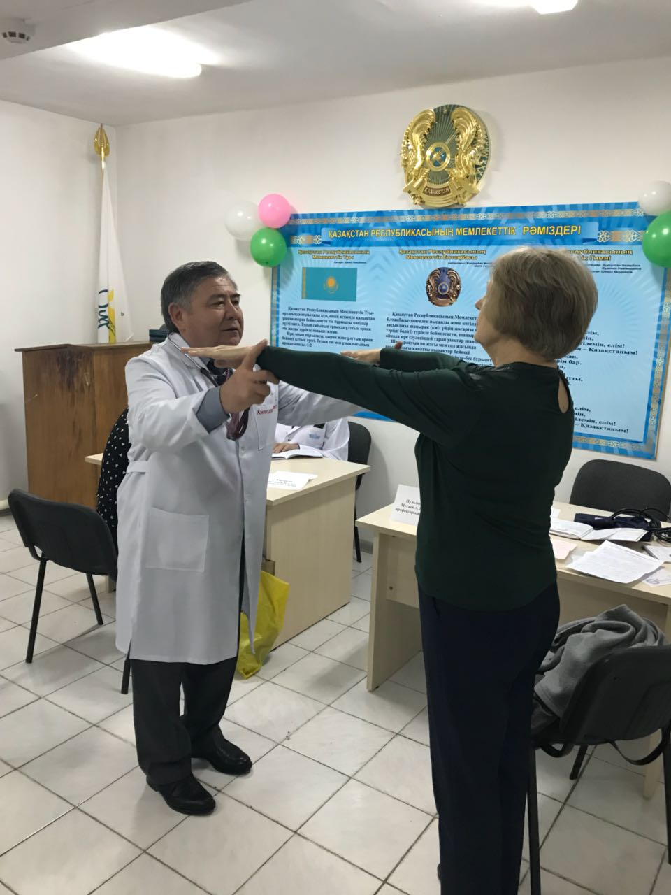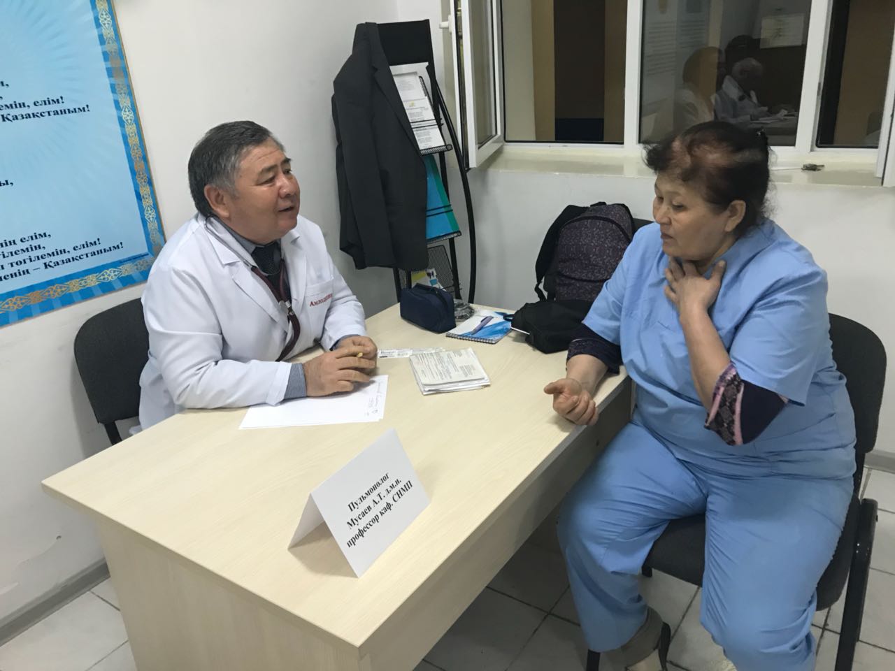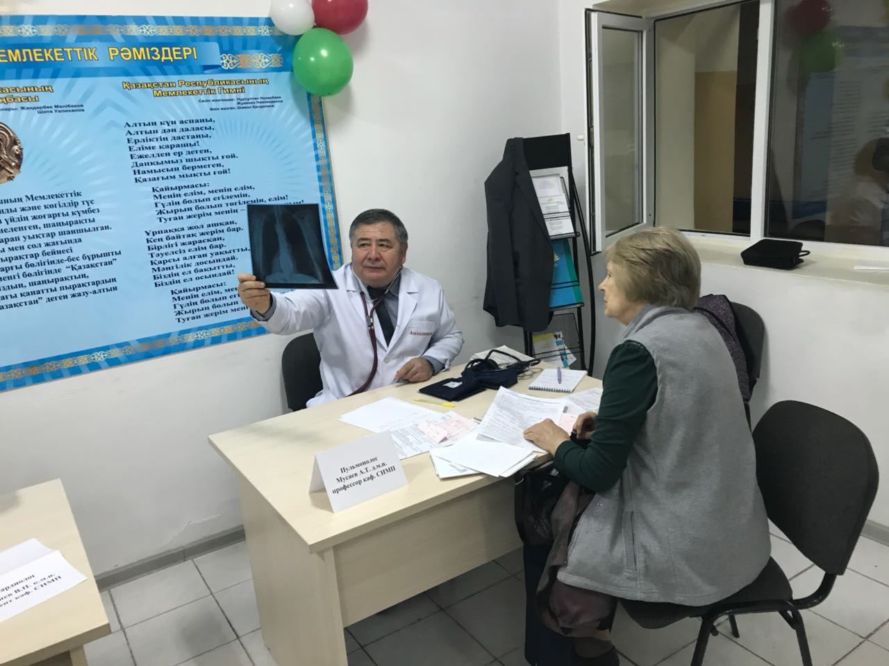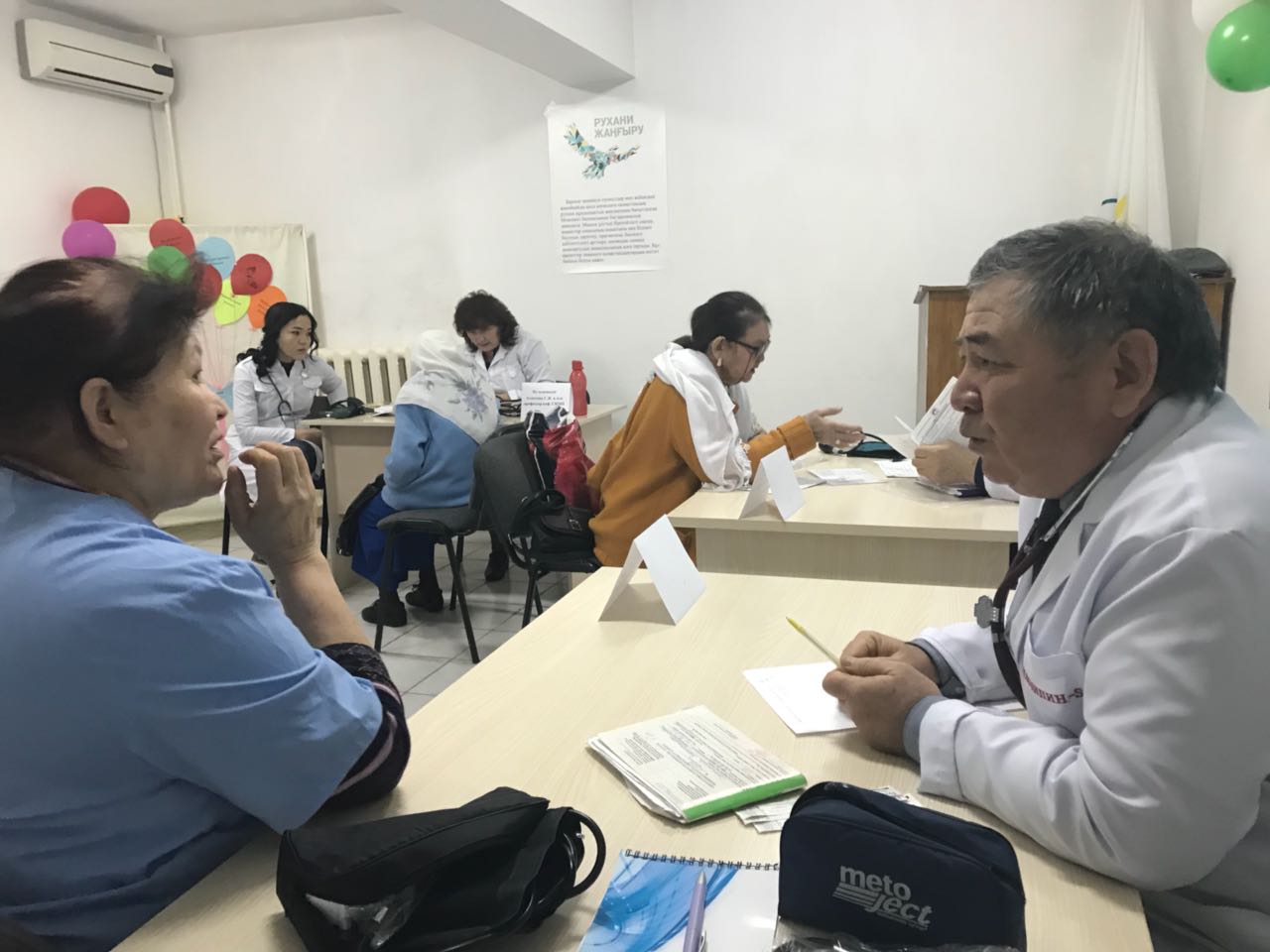 ЖМЖБ кафердасының ұжымының катысуымен «Ұлы отан соғысының ардагерлер» калалық емханасында Бүкіләлемдік денсаулық күніне орай ашық есік – іс шарасы ұйымдастырылды. Оған м.ғ.д.,проф. Мусаев А.Т. , м.ғ.к., проф Ахметова Г.Д., м.ғ.к., доцент Воднев В.П., м.ғ.к., доцент Турсынмуратова Б.Е , ассистенттер: Жубатканова Ж.К Балканай Г. Б Шынтерекова А.Е. Мусаева Г.А. , Кундызбаева М.М ., және ЖМ 5 курс 020-1-2 топ студенттері, екінші оқу жылындағы педиатр резиденттері катысты.