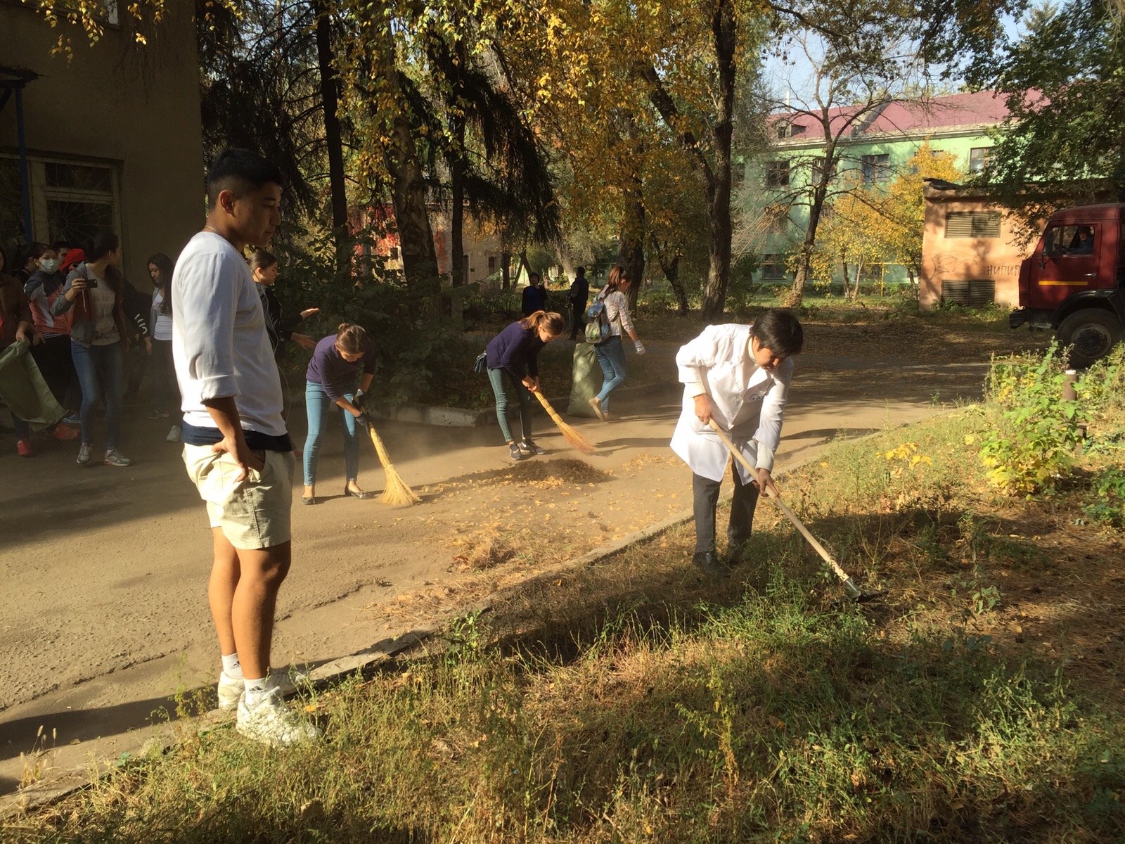 -«Тазалық-денсаулық кепілі»-деп, халқымыз бекер айтпаған. Осы орайда біз С.Ж.Асфендияров атындағы Қазақ Ұлттық Медицина Университетінің интеграциялық оқу орталығында жалпы медицина факультетінің 3-курс студенттері (18-1,2; 20-1,2; 25-1,2; 27-1,2 топтар) және гистология модулінің оқытушылар ұжымы жалпы қалалық сенбілік өткіздік. Сенбілік бұл- қаланың тазалығы үшін мектеп оқушылары, студенттер, кәсіптік мекемелердің қызметкерлерімен ұйымдастырылған қоғамдық жұмыс.