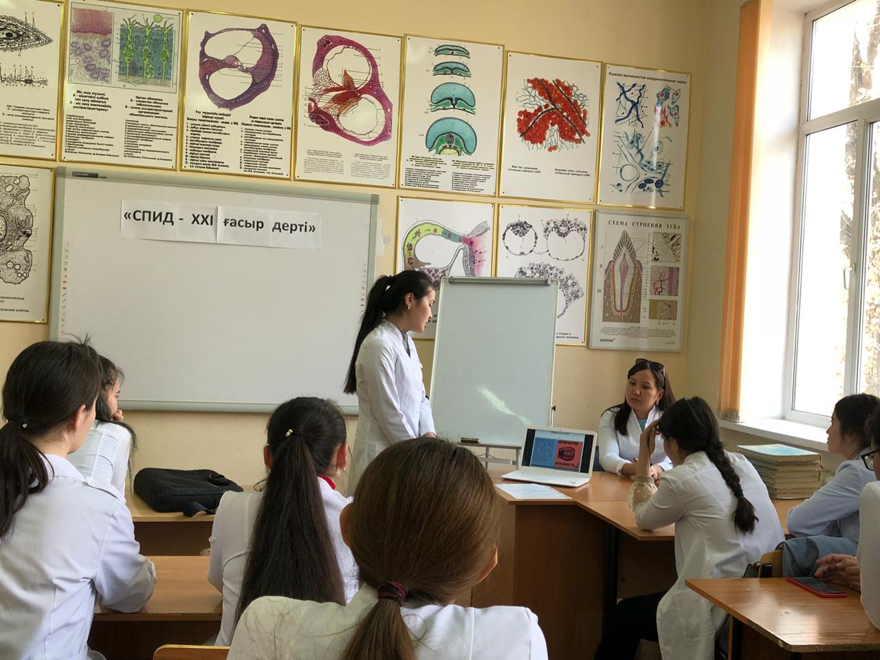 2019 жылдың 8 сәуір күні гистология кафедрасында (анатомиялық корпус, 209 оқу бөлмесі) ЖМ 18-010-01 топ студенттерімен ұйымдастырылған «СПИД – ғасыр дерті» атты дөңгелек үстел өткізілді. Дөңгелек үстелге кафедра меңгерушісі доцент Ергазина М.Ж. және кафедраның  оқытушылар құрамы қатысты.