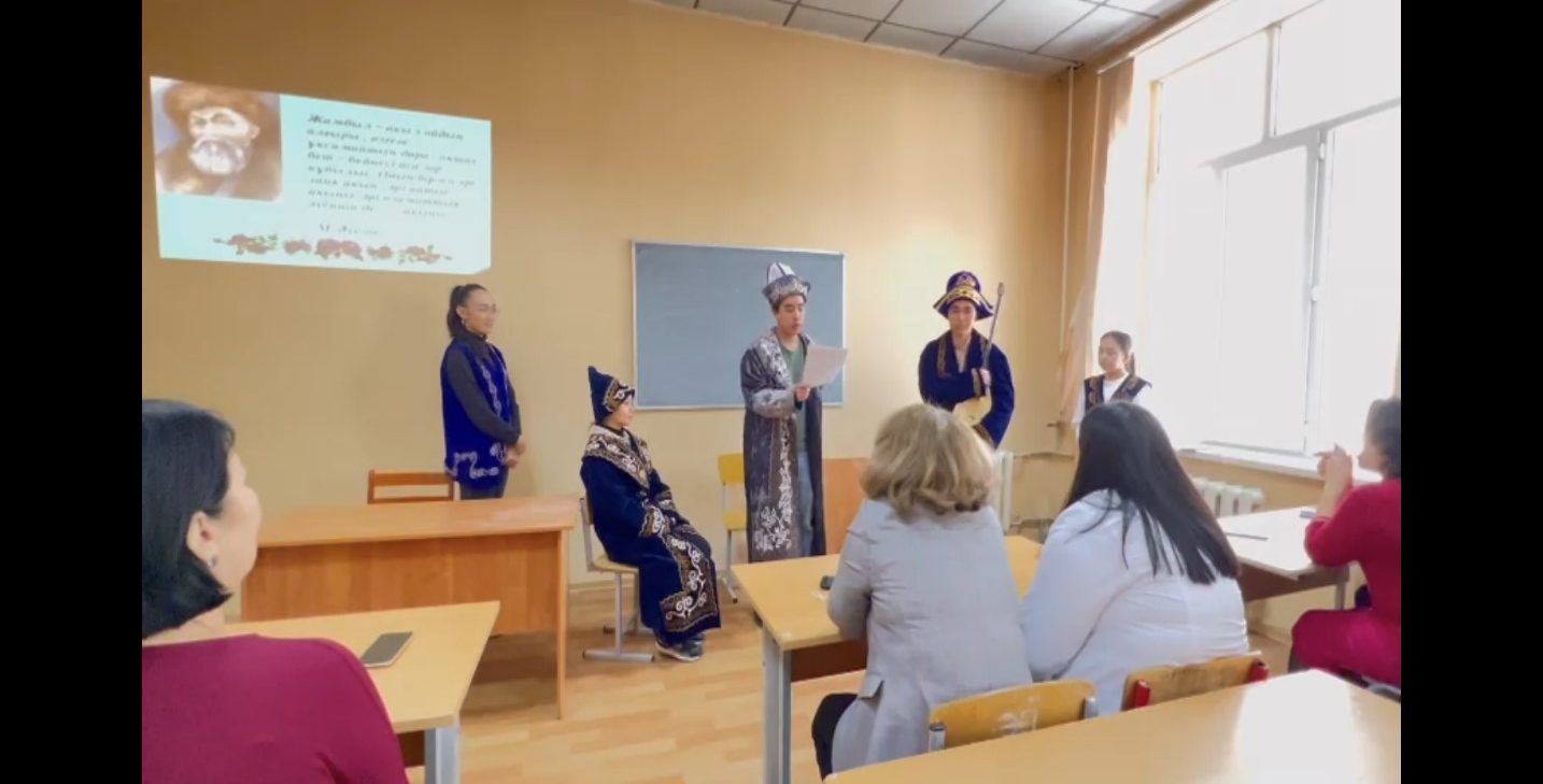 Іс-шара барысында студенттер Жамбыл Жабаевтың өмірбаяны мен шығармашылығы жөнінде презентация дайындап, Жамбыл Жабаев атындағы мұражайға саяхат жасады. Мухаммадиярова Аружан домбырамен «Түрікмен» күйін өте жоғары деңгейде орындап берді. Топ студенттері Жамбыл атамыздың шығармашылығының көркем туындыларын мәнерлеп оқып берді.